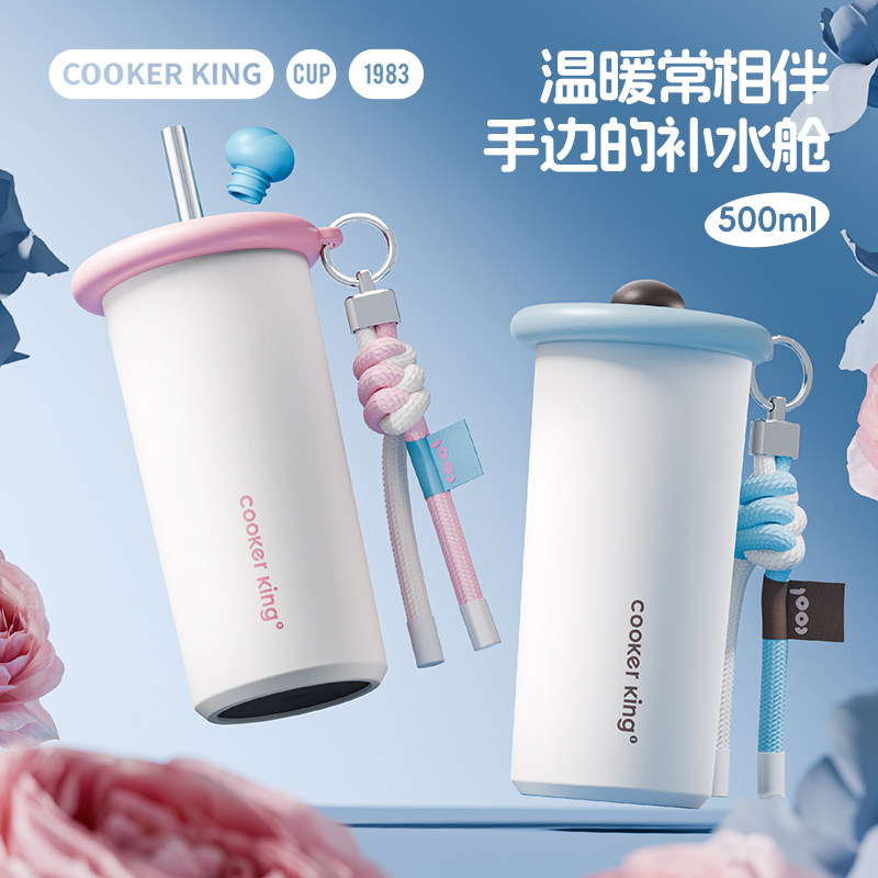炊大皇保温杯吸管杯2025新款简约高级感便携时尚随手杯水杯子