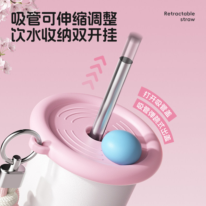 杯具熊成人保温杯女士水杯弹跳直饮杯男不锈钢情侣杯子学生吸管杯