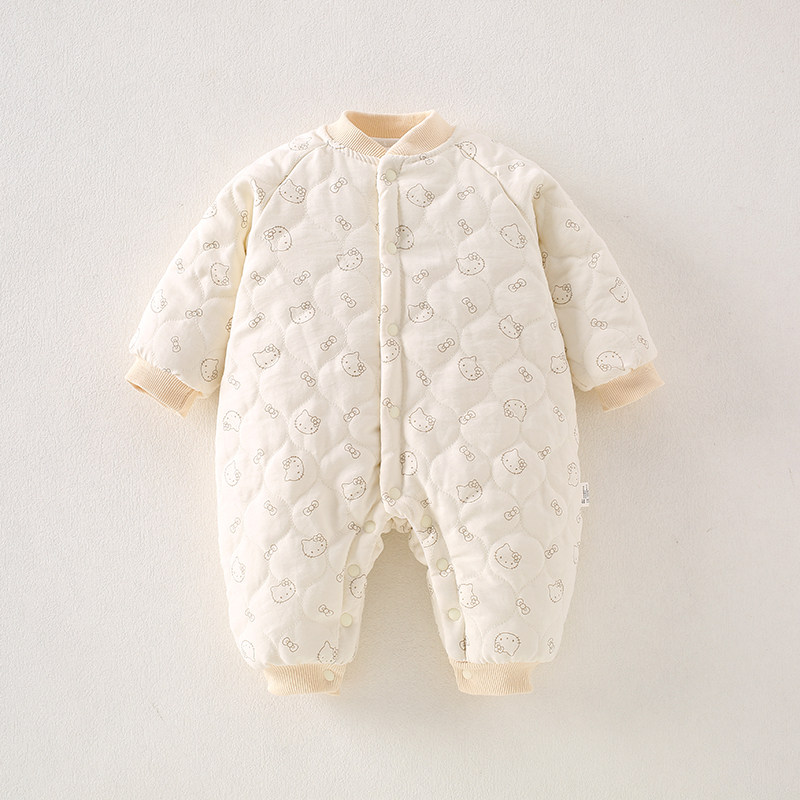 贝肽斯婴儿夹棉连体衣冬季加厚保暖新生儿衣服宝宝外出服冬装棉服