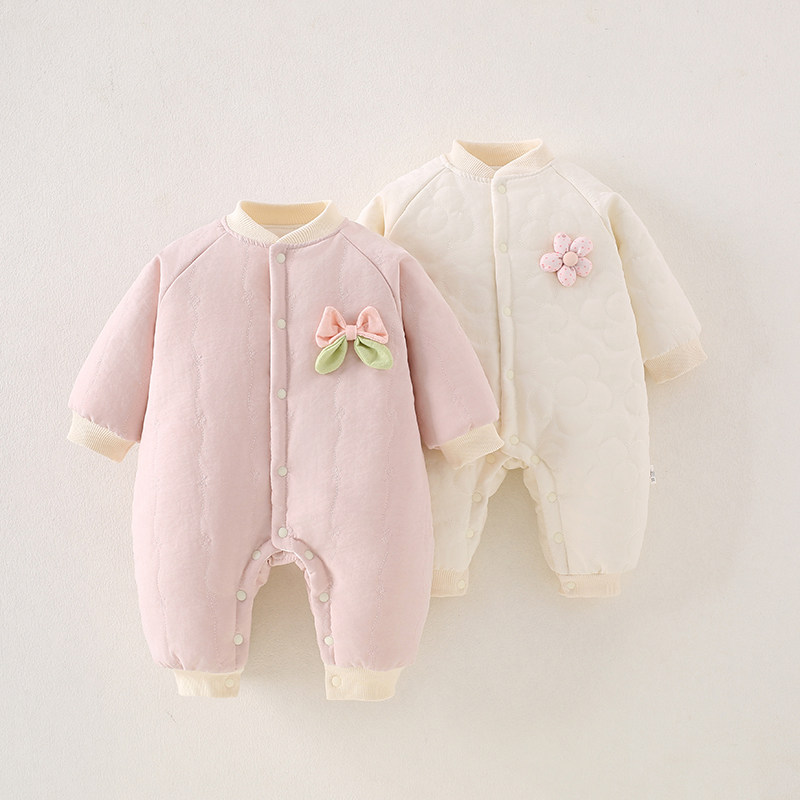 婴幼儿夹棉连体衣秋冬季保暖棉服男女宝宝可爱加厚哈衣温暖爬爬服