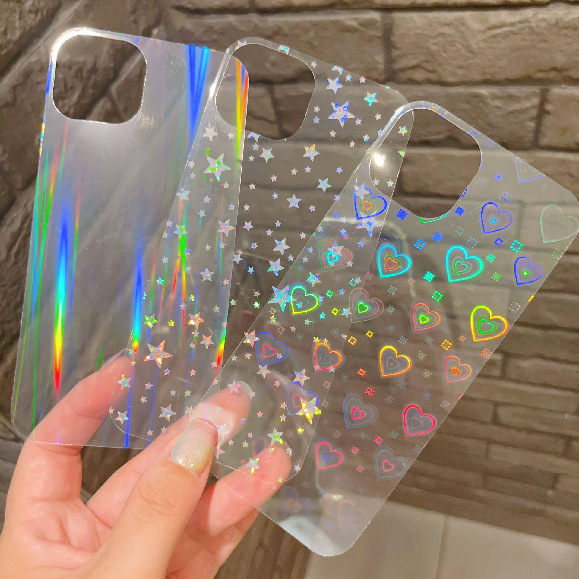 vivox200/s19/18/17/15手机壳背卡打底素材贴纸镭射贝壳纹羽纱透明diy咕卡iqooz9x/12/11/10/8手机背膜材料包