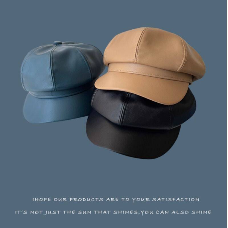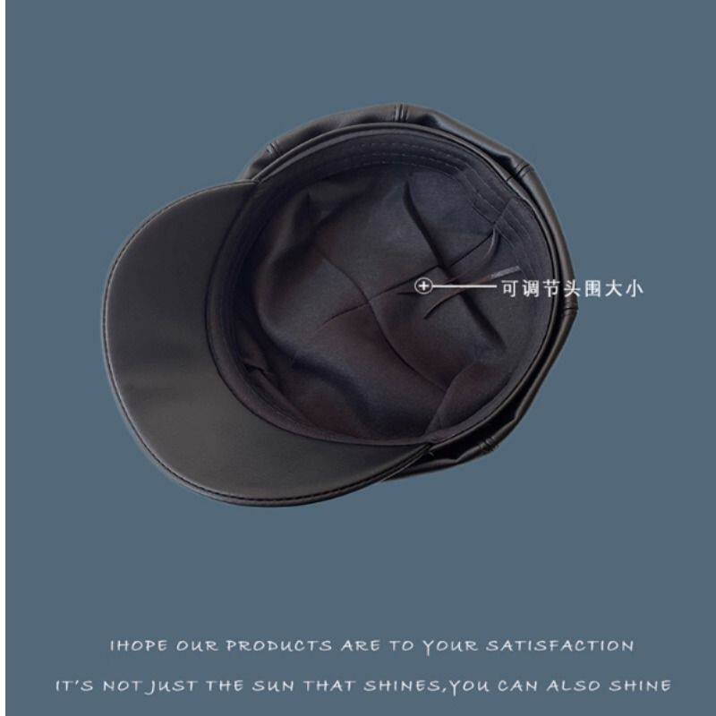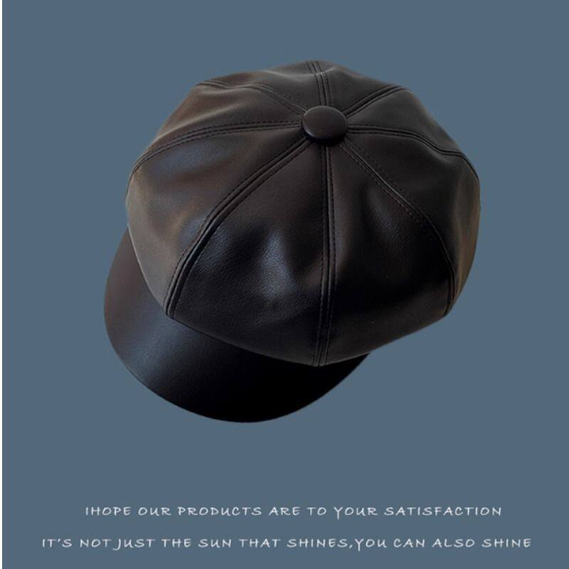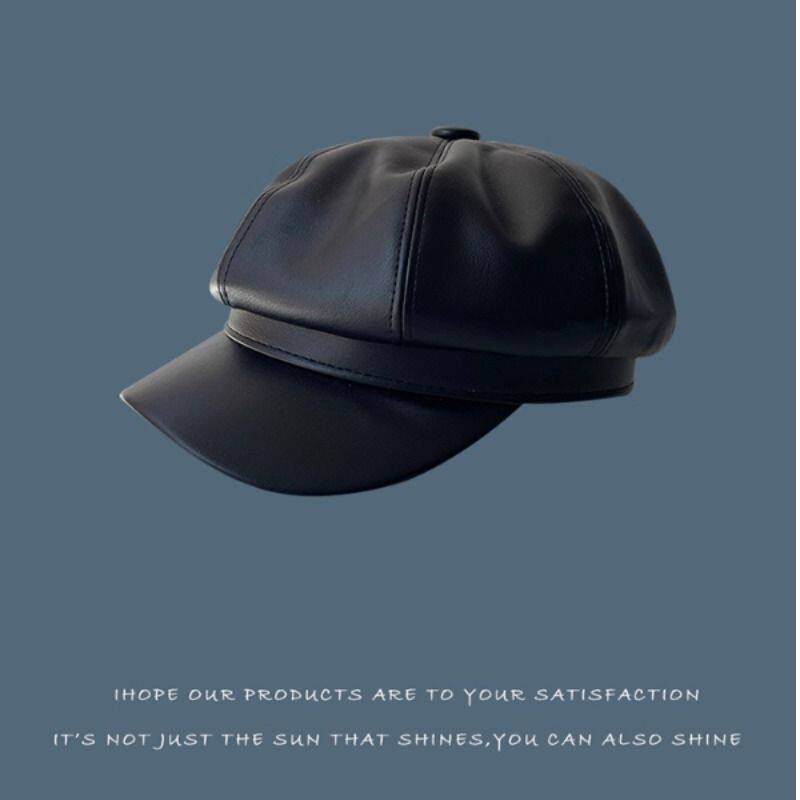 黑色皮质贝雷帽女款英伦设计感复古百搭日系韩版春秋南瓜八角帽子