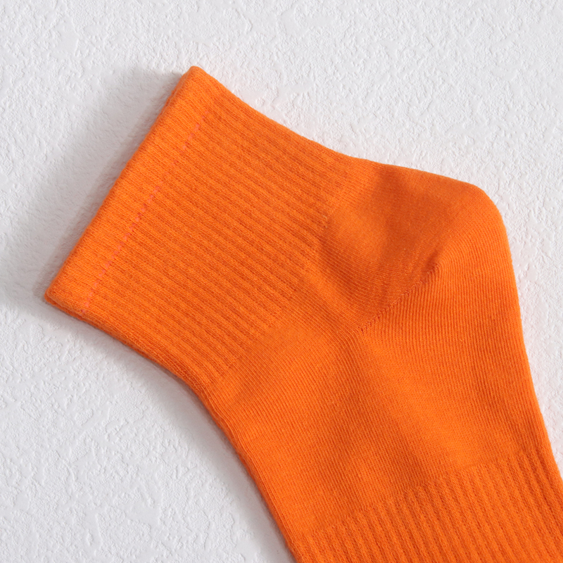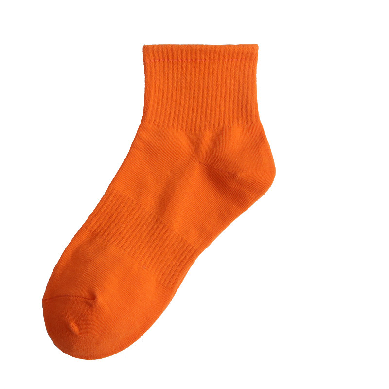 橘色袜子女中筒袜纯棉纯色船袜女桔色低帮运动橙色短筒袜男士全棉