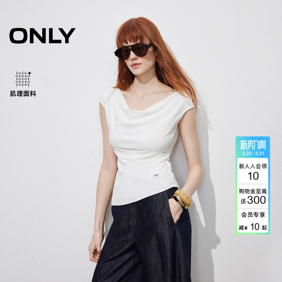 ONLY2026春季新款上衣肌理感收腰抽褶显瘦荡领纯色简约显瘦T恤女