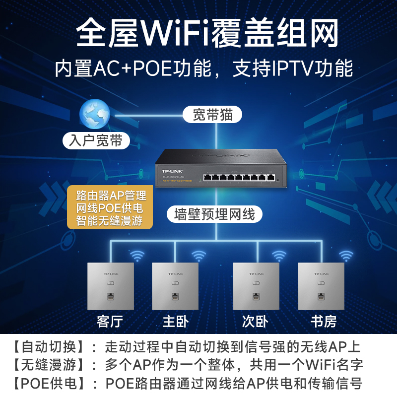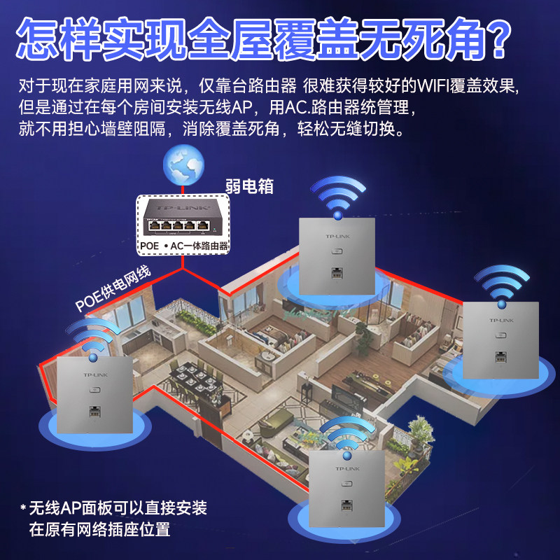 tplink无线ap面板千兆双频无线路由器wifi6家用全屋覆盖套装墙壁式poe供电ac监控摄像头别墅大户型安装服务