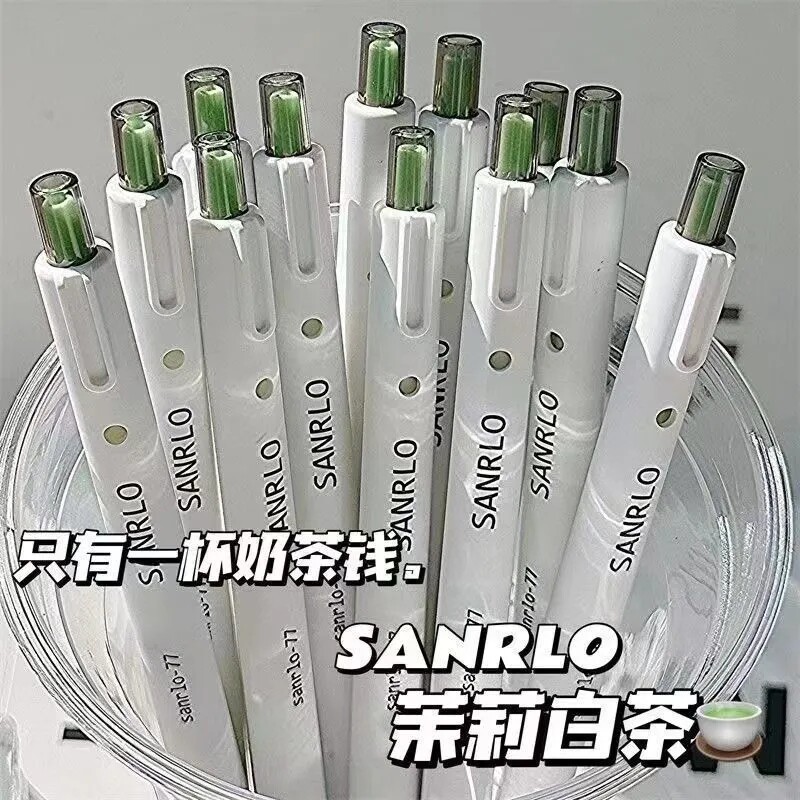 茉莉白茶无挂钩高颜值ins按动笔学生考试好写速干黑色0.5中性笔