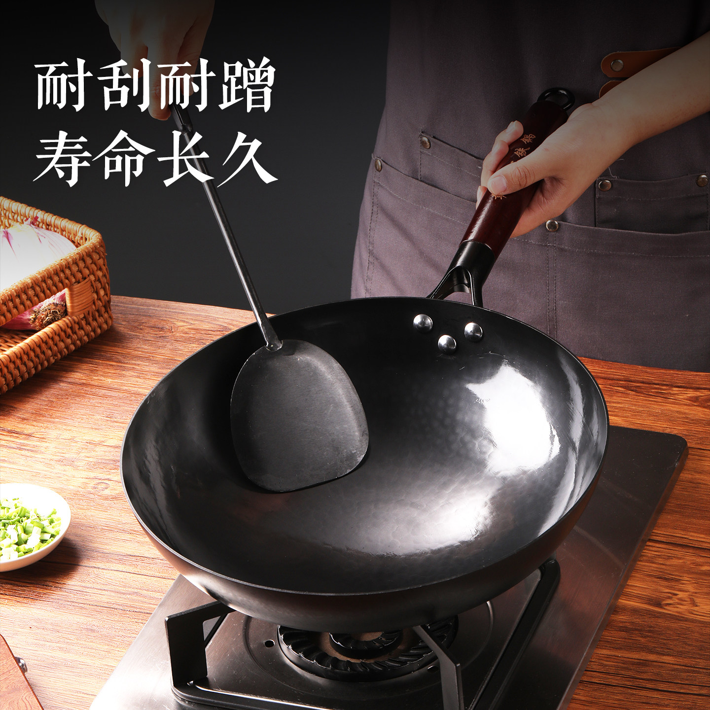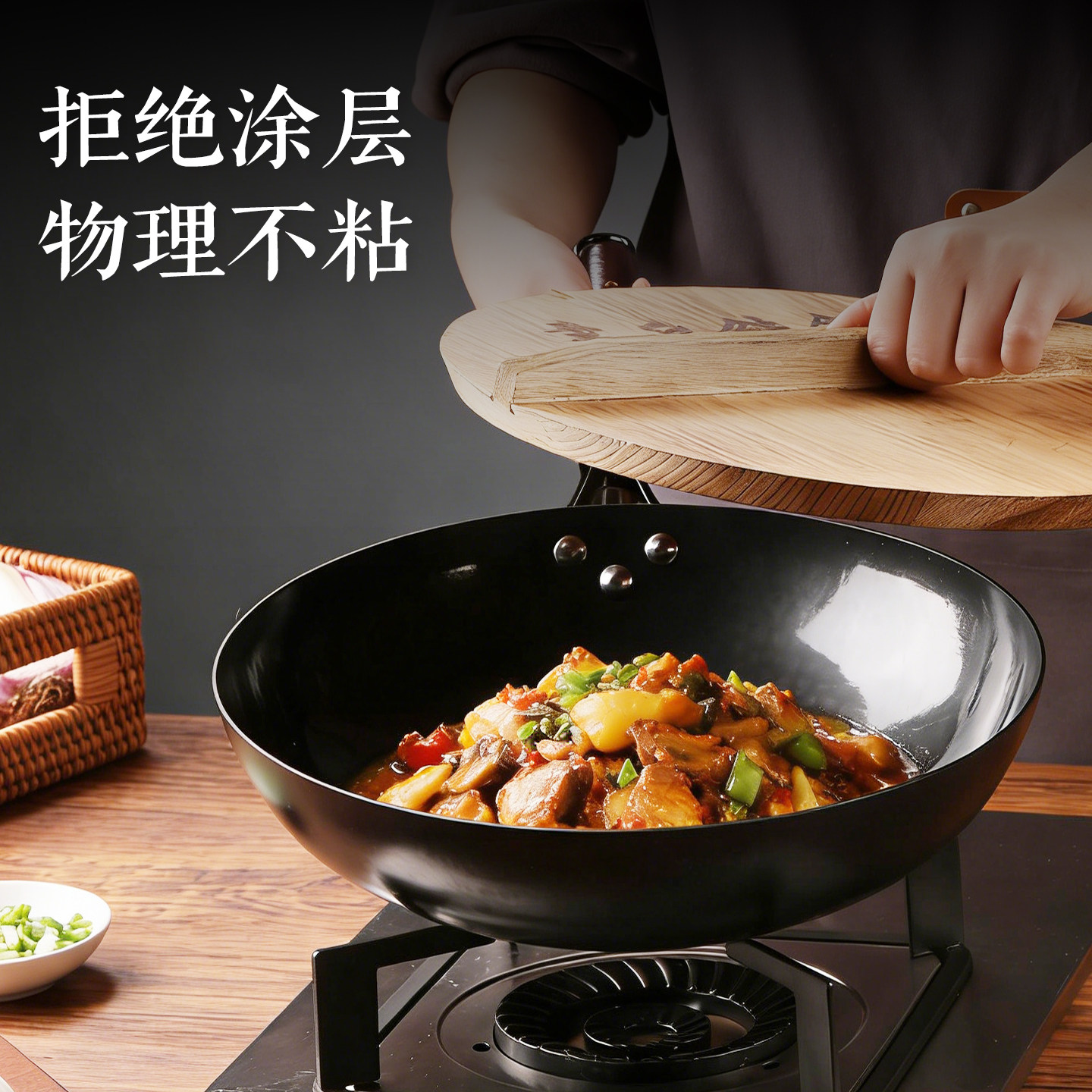 无涂层 不粘锅 不生锈 手工锻打 少油烟