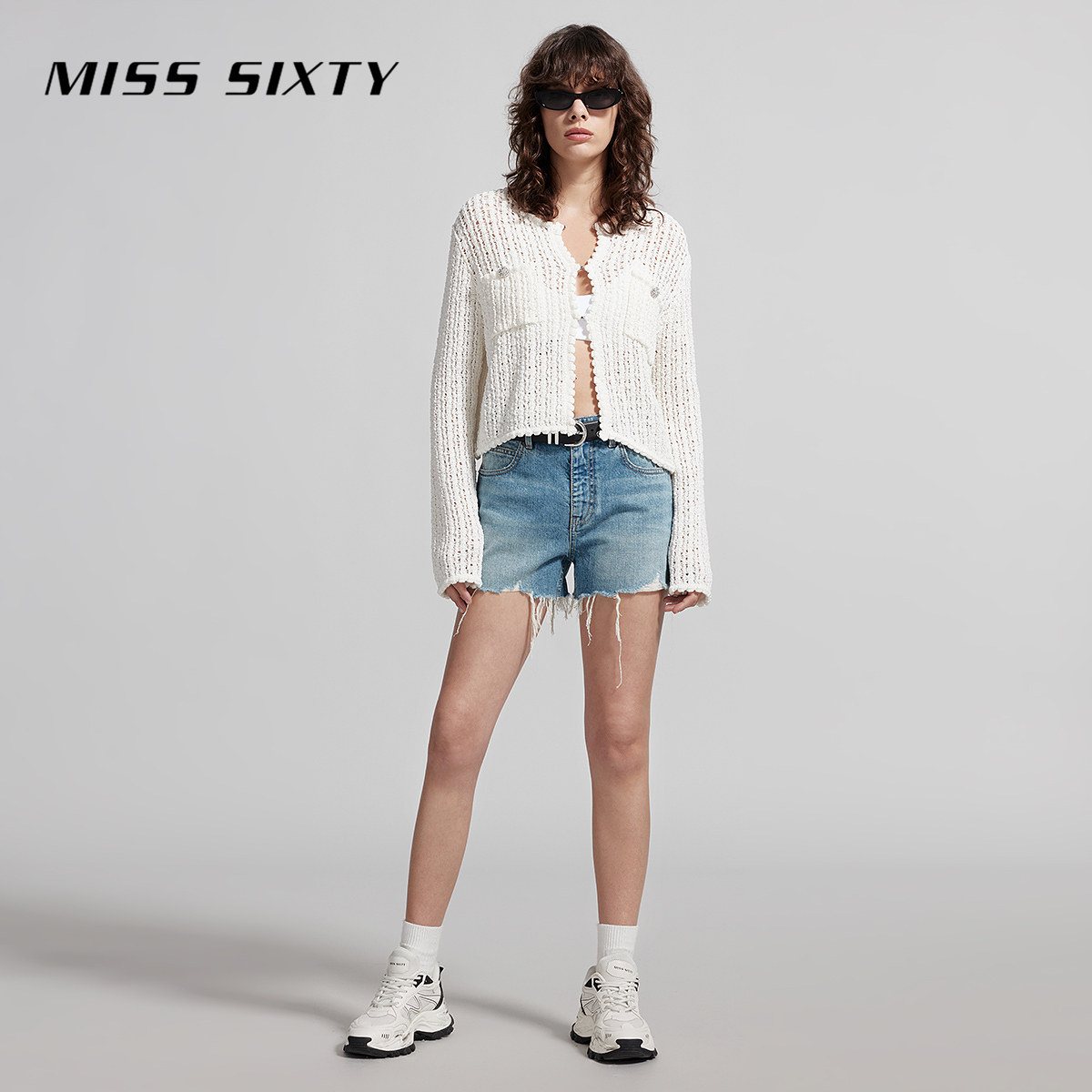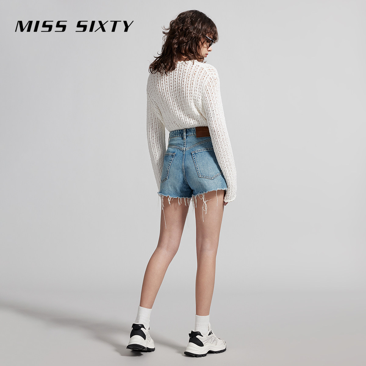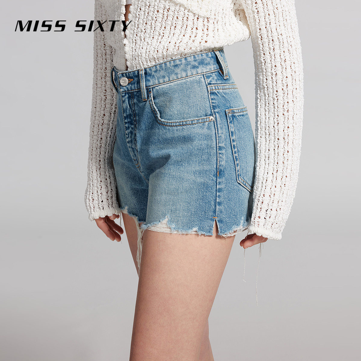 【进口牛仔面料】Miss Sixty牛仔短裤复古显瘦百搭女高腰磨破拉须
