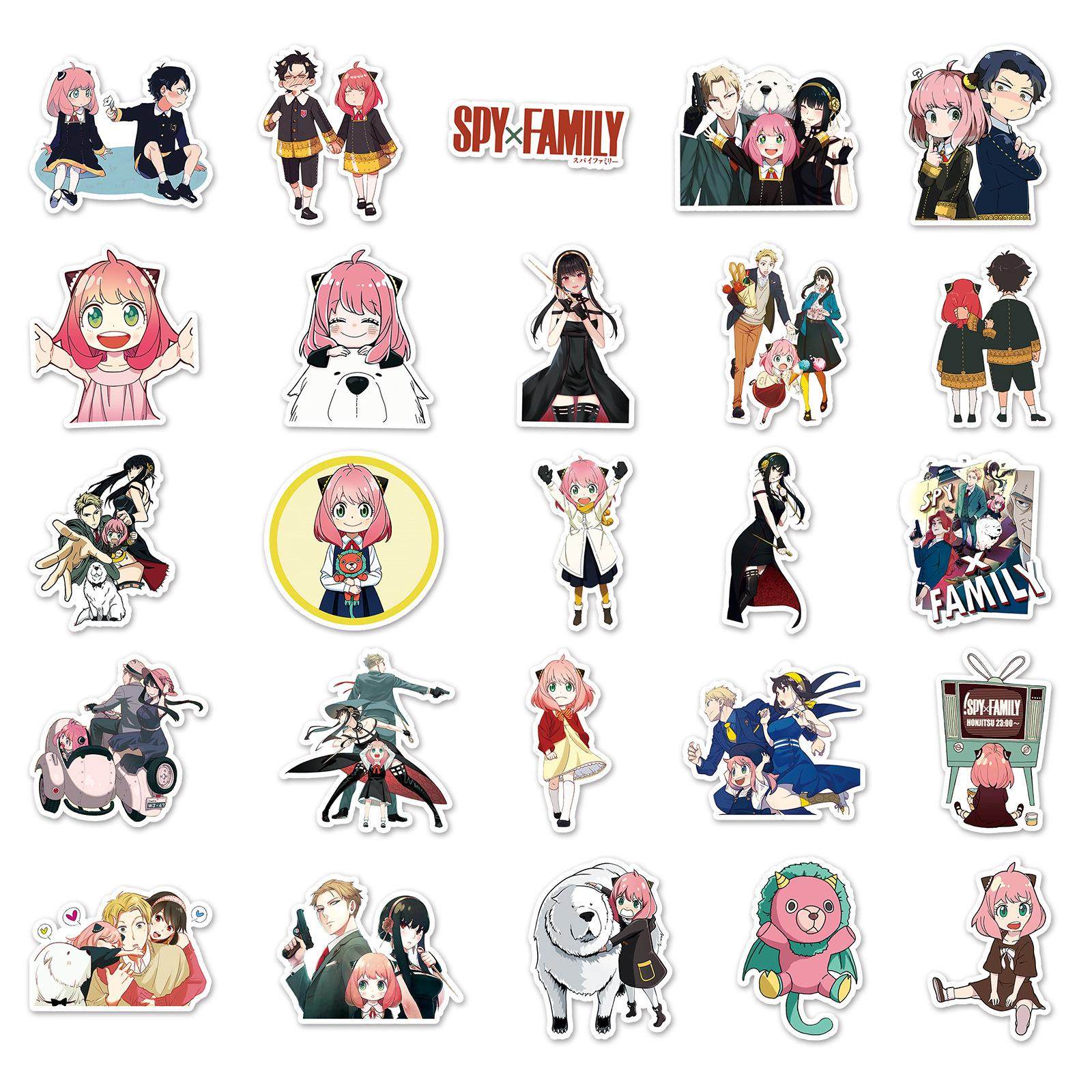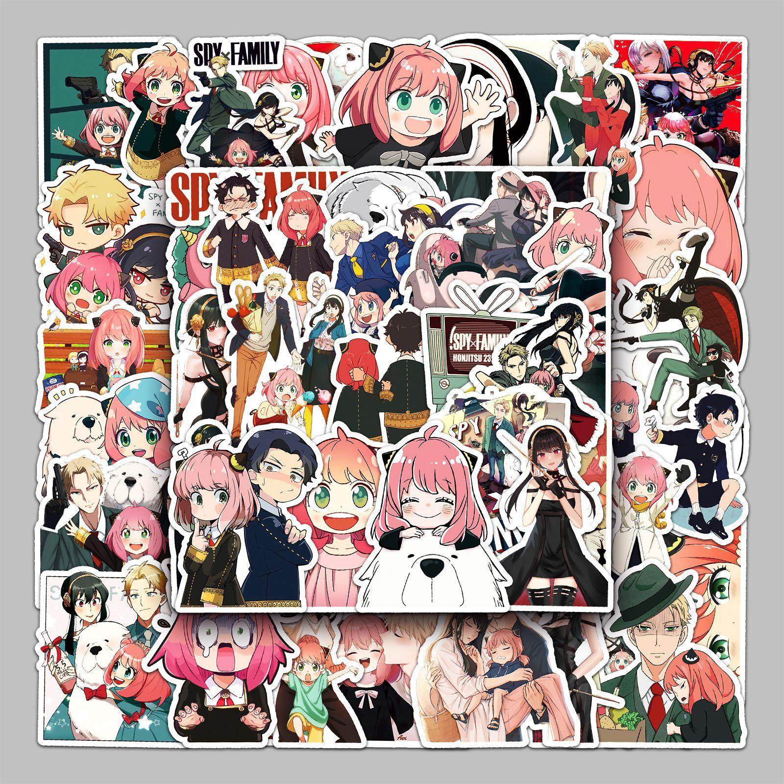 50张间谍过家家日漫行李箱贴纸滑板车可滴胶贴纸电脑平板卡通装饰
