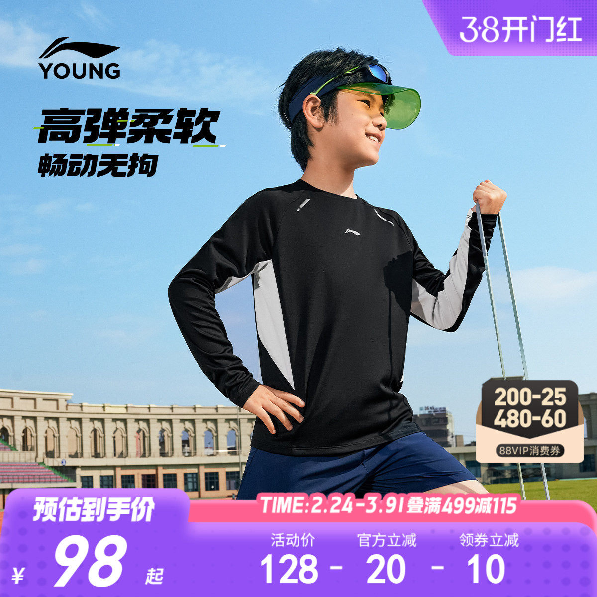 李宁儿童速干衣男孩上衣中大童男童装短袖长袖T恤女童青少年秋装