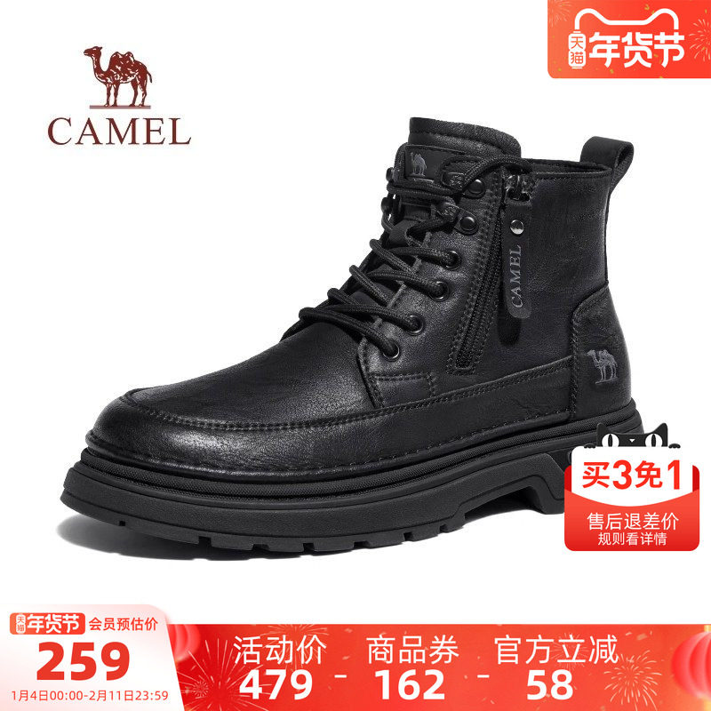 骆驼男鞋2025秋季新款马丁靴中帮男士加绒户外复古英伦厚底工装靴