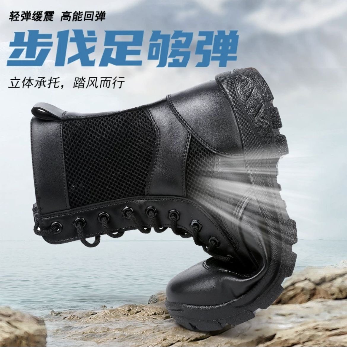 夏季作战靴透气网面登山鞋战术靴男女高帮作训靴保安靴工作鞋靴