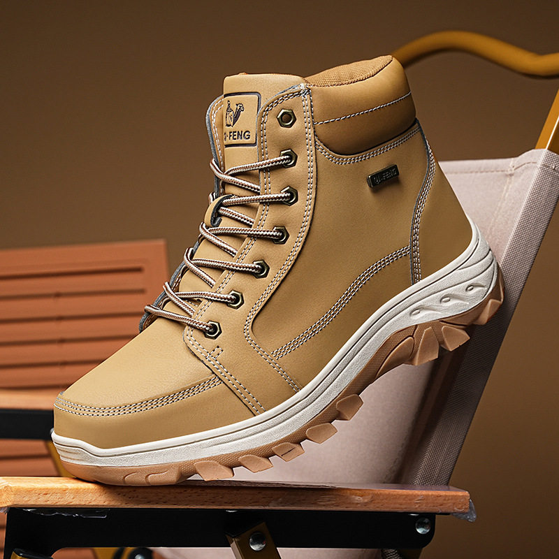骆驼马丁靴男鞋工装加绒加厚保暖户外男款休闲中高帮时装靴子秋冬