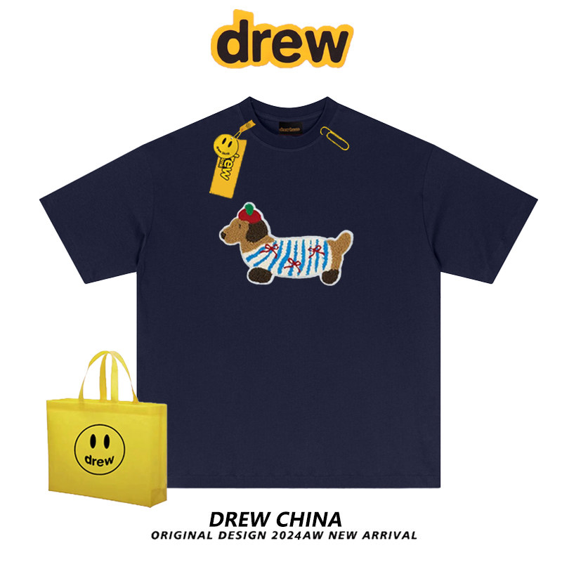drew美式潮牌腊肠狗印花短袖T恤男女可爱小狗宽松纯棉情侣上衣ins