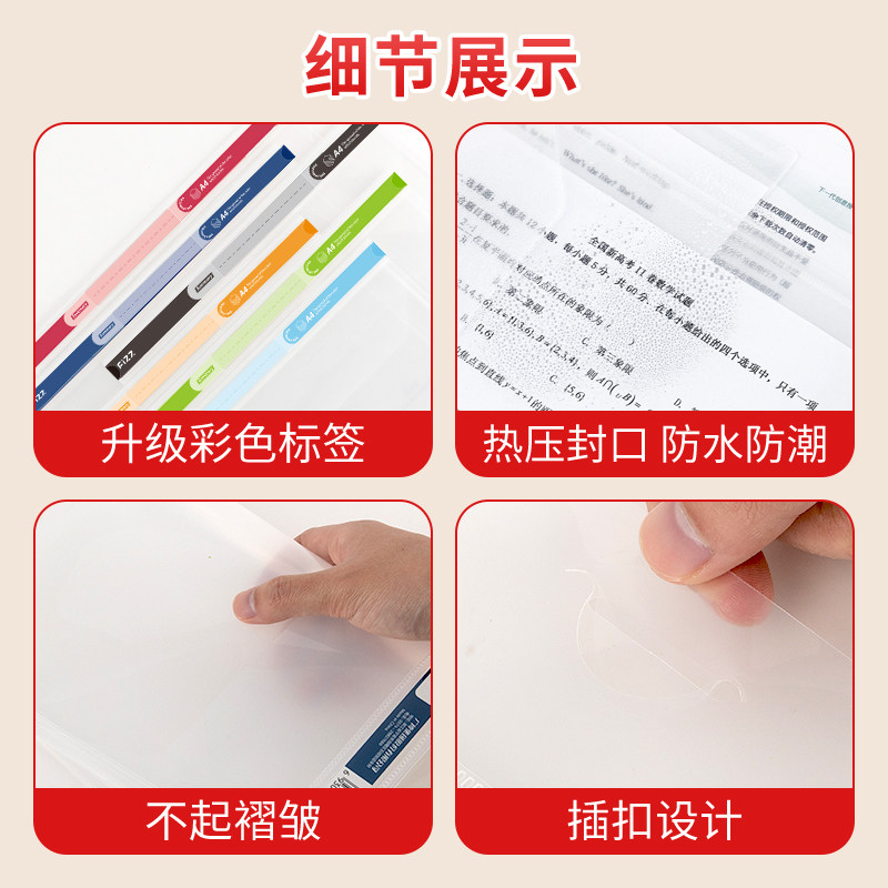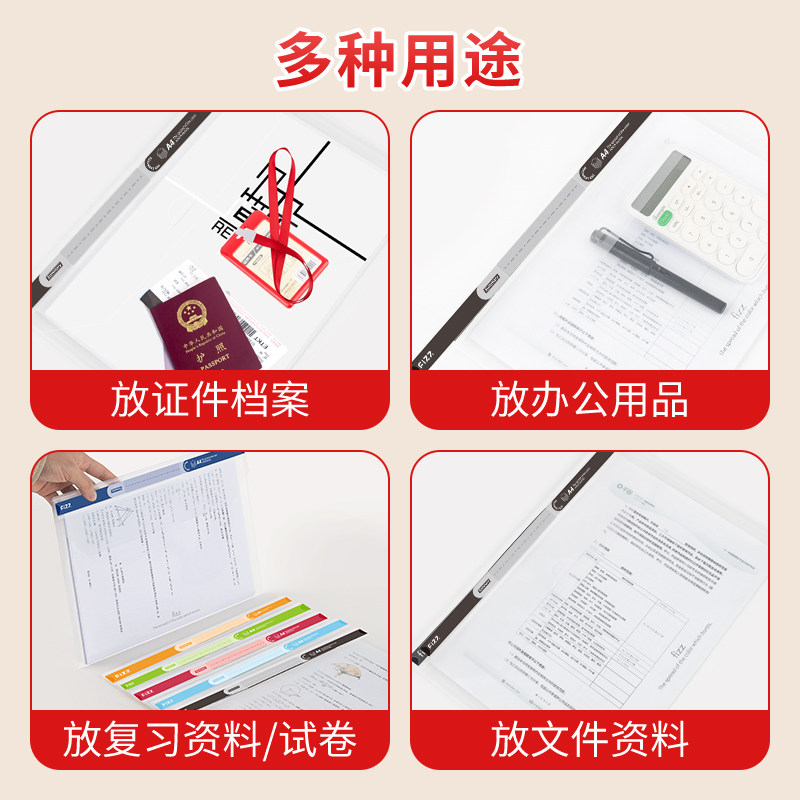 广博A4文件袋透明塑料加厚大容量按扣试卷收纳袋学生用档案资料袋文件夹包文具小学商务合同办公用品升级无扣