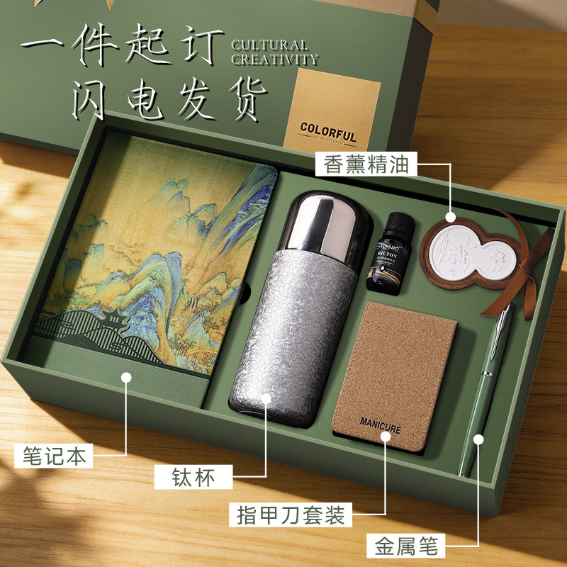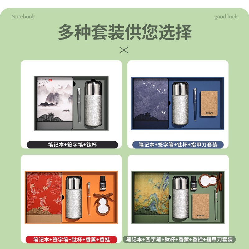 高档中国风伴手礼笔记本钛杯礼盒套装商务礼品定制记事本200页支持全套定制送礼国潮创意通用笔记本企业定做