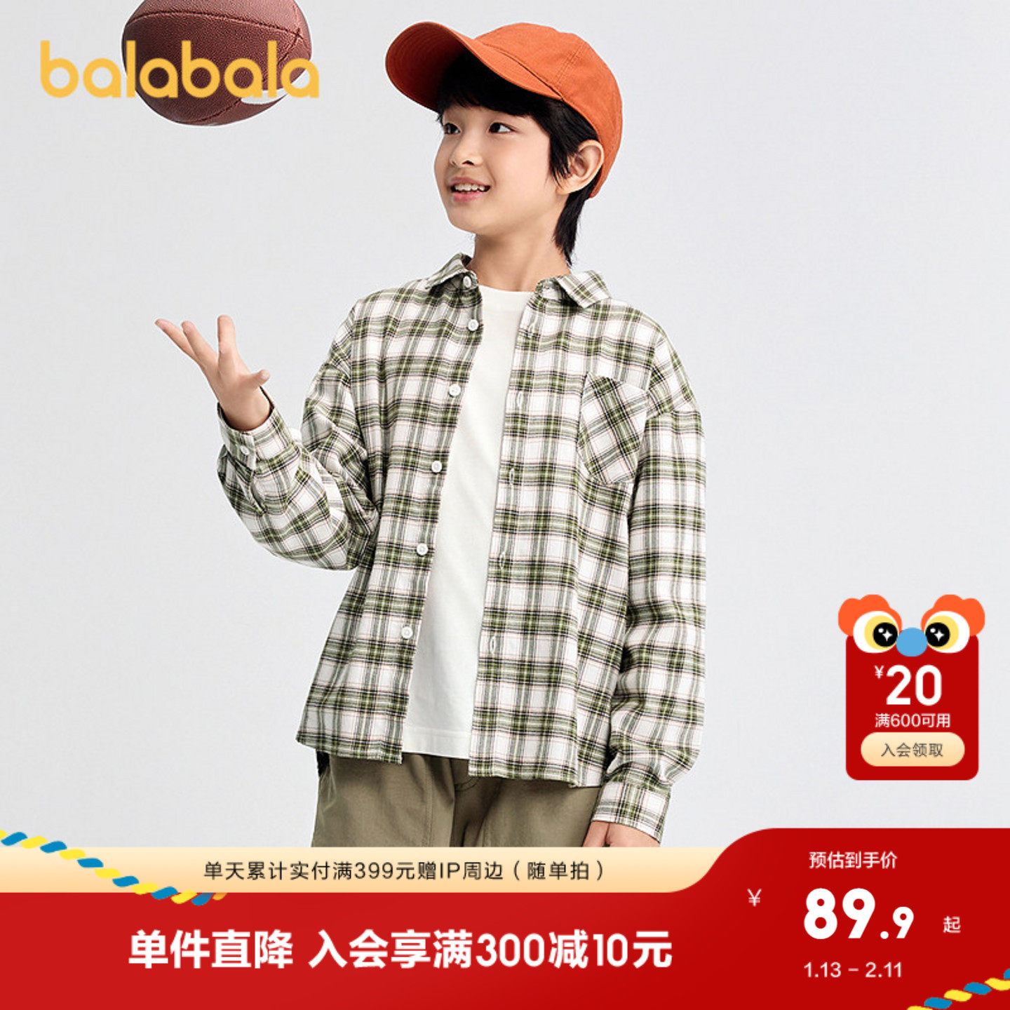 巴拉巴拉儿童衬衫长袖亲子装2025新款秋装舒适超柔绒宽松柔软亲肤
