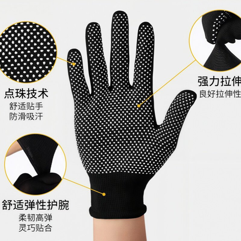 手套劳保耐磨防晒防滑工作尼龙薄款夏季干活透气点胶男女橡胶电工