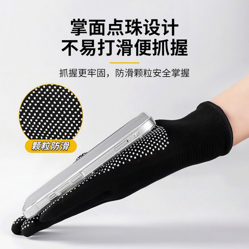 PU涂指涂掌尼龙无尘防静电手套劳保带胶工作防滑透气耐磨干活工作