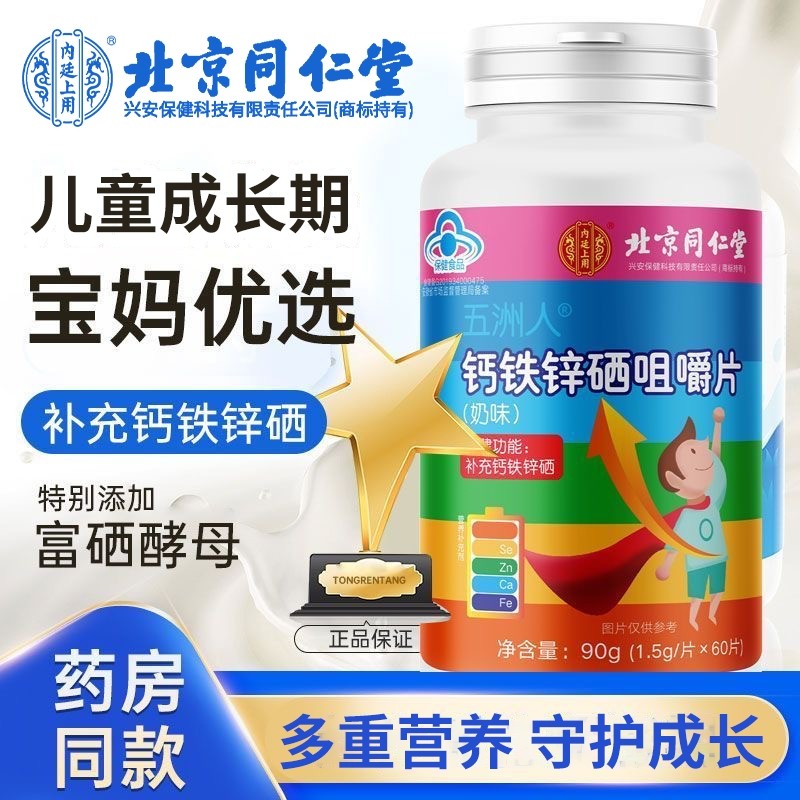 北京同仁堂钙铁锌硒咀嚼片正品官方旗舰店儿童成长青少年补钙长高
