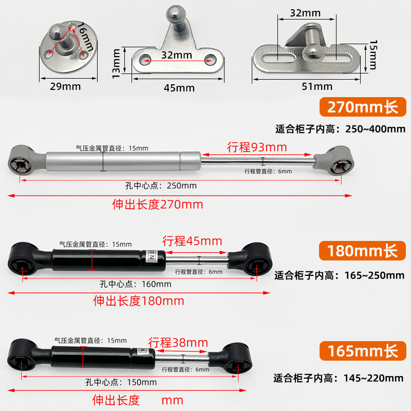 上翻门上翻玻璃门支撑杆铝框门液压杆气压杆小吊柜超短款气撑杆