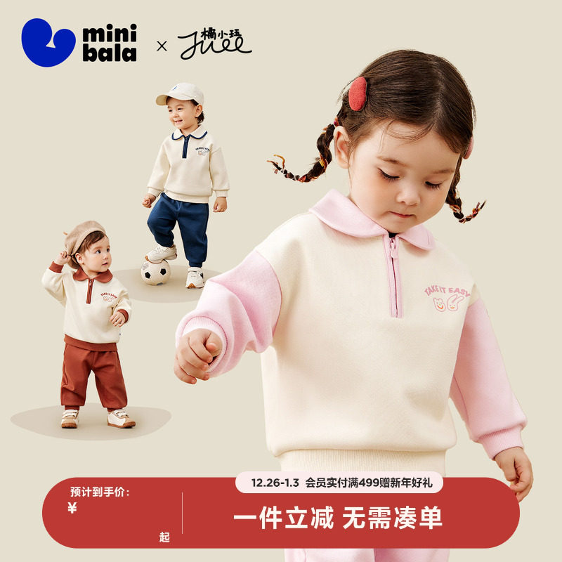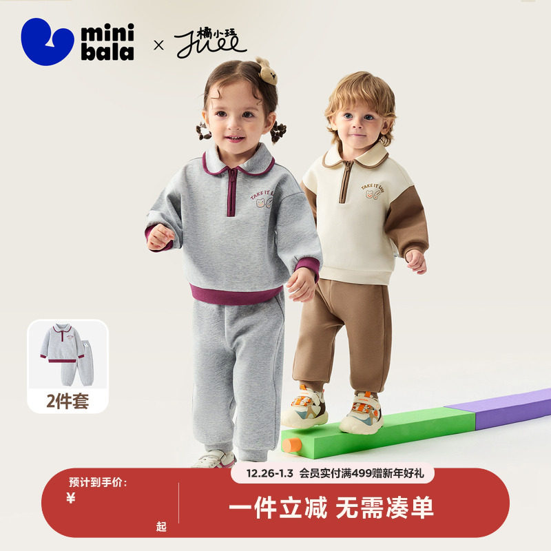 迷你巴拉巴拉男童女童长袖套装宝宝运动学院风卫衣长裤2025秋新品