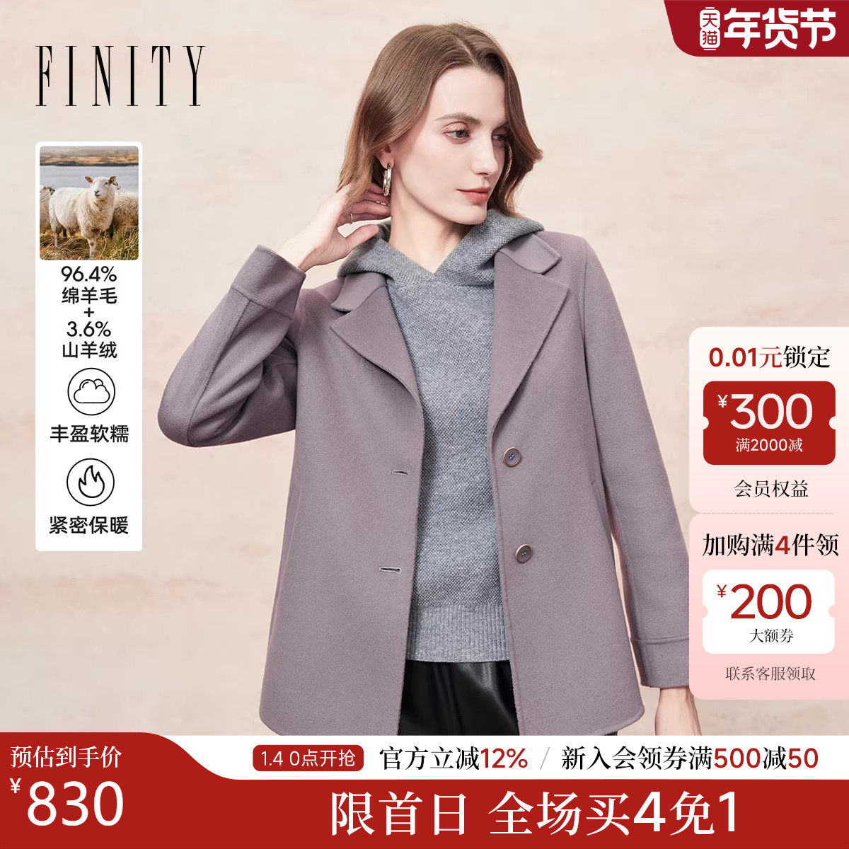 FINITY菲妮迪羊绒大衣2025年冬季新款简约双面呢翻领毛呢外套女士