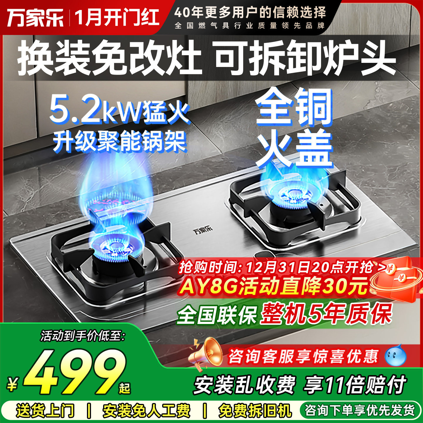 万家乐AY8G燃气灶双灶不锈钢灶台天然气液化气灶嵌入式煤气灶家用
