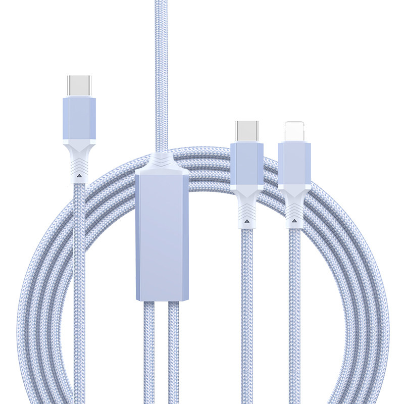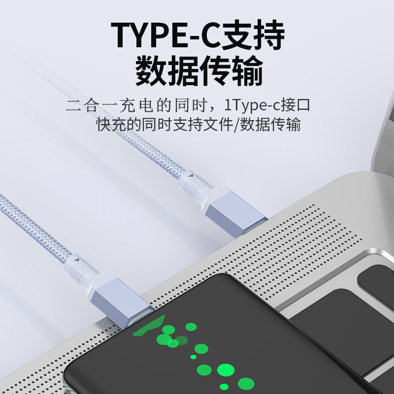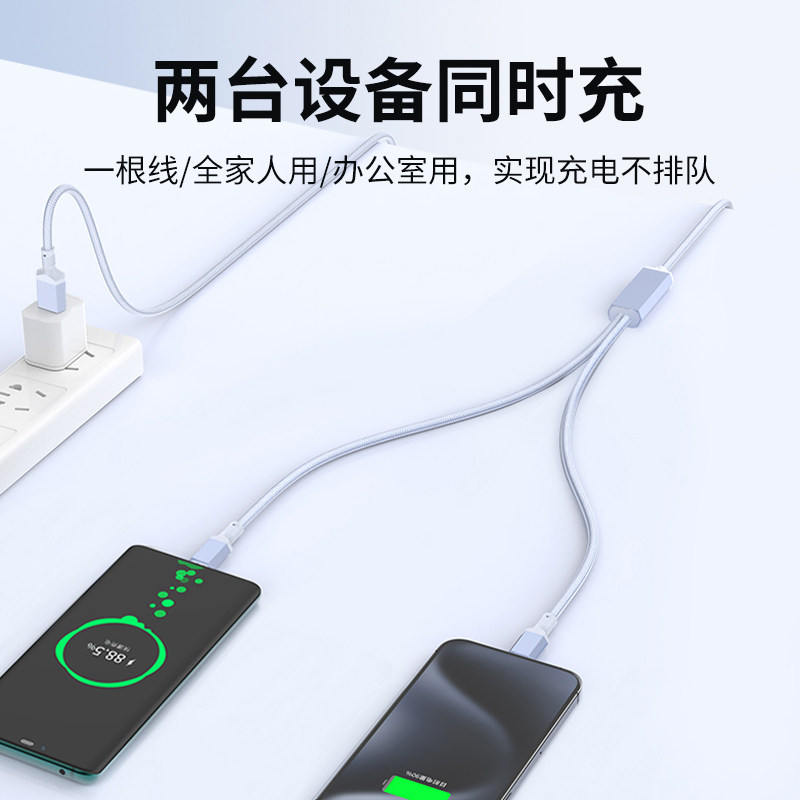 0.5/1.2/2/3米加长usb/type c转一拖二100w超级快充数据线适用华为苹果iPhone14/15/16二合一车载pd快充电线