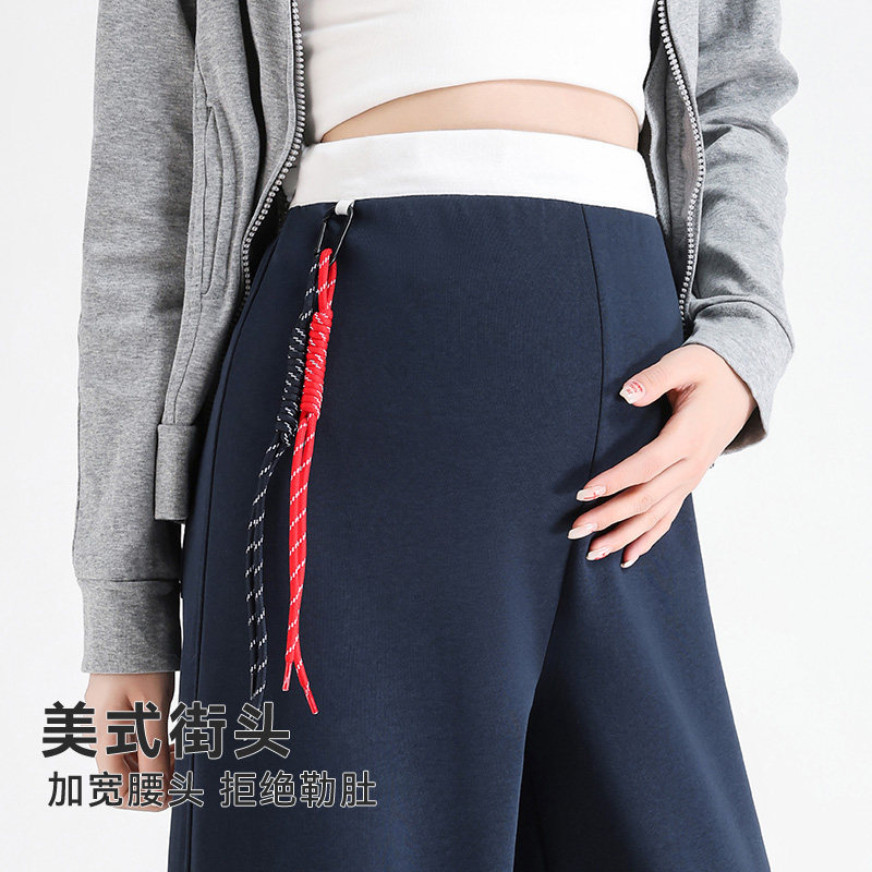 婧麒孕妇阔腿裤冬外穿加厚撞色腰直筒裤大码不勒肚子运动裤孕妇装