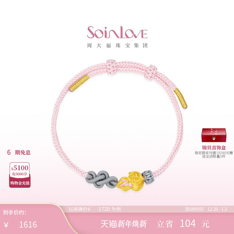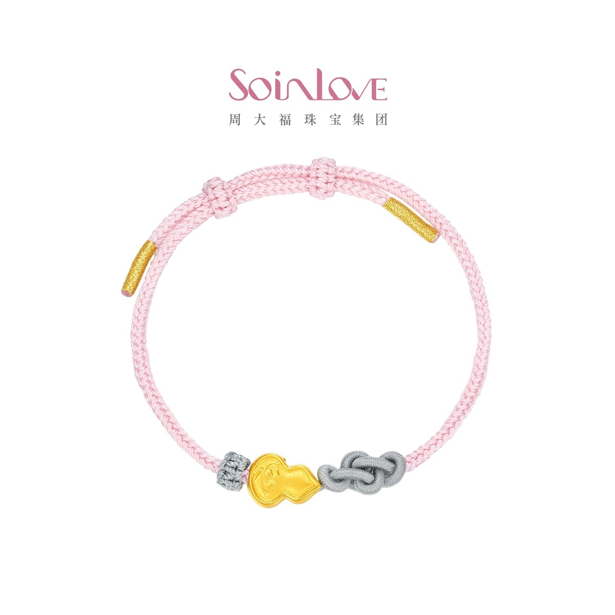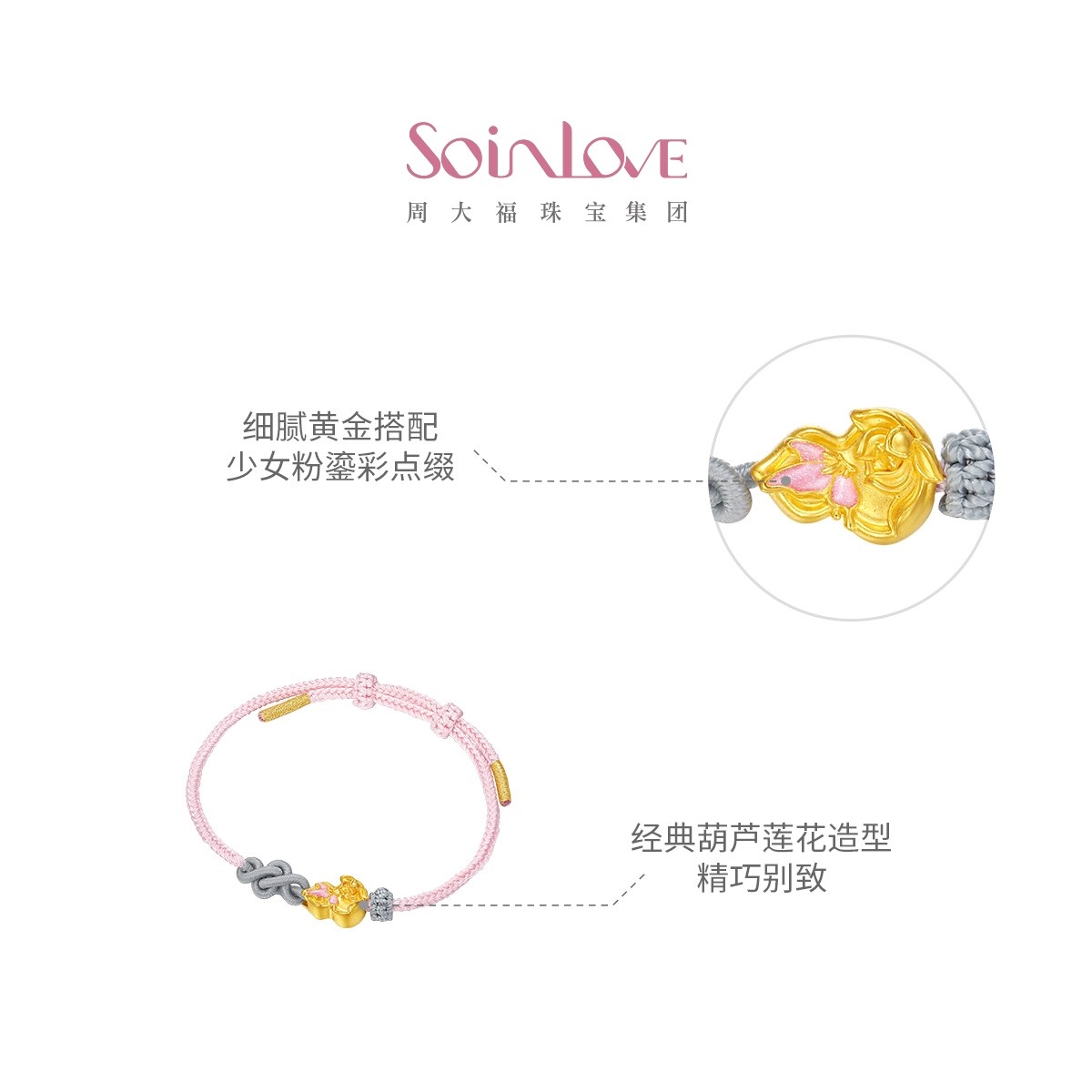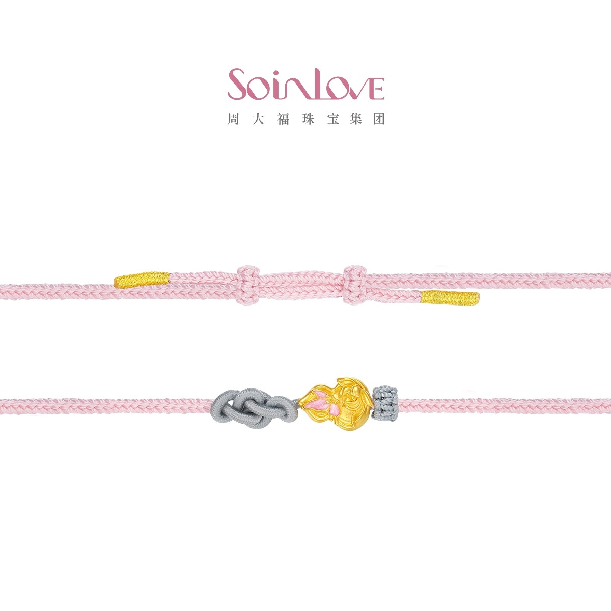 周大福SOINLOVE蜜粉金十里红妆蝴蝶葫芦黄金转运珠手绳生日礼物