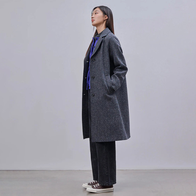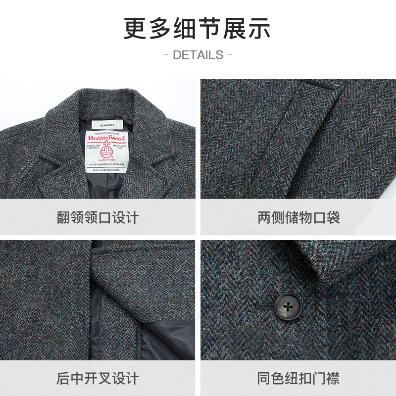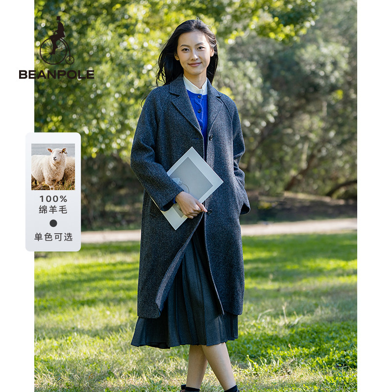 100%绵羊毛 BEANPOLE滨波 女优雅静奢简约时尚智性风粗花呢长大衣
