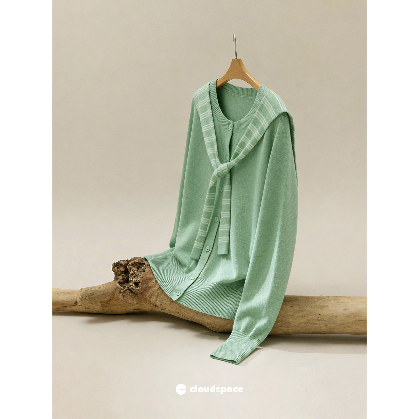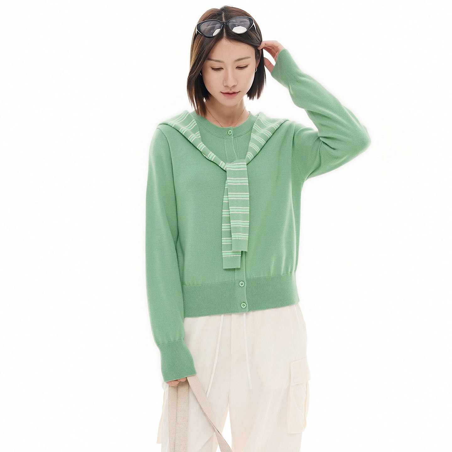 云上生活【柳绿】可机洗羊毛混纺叠穿开衫外套2026春修身羊毛衫女