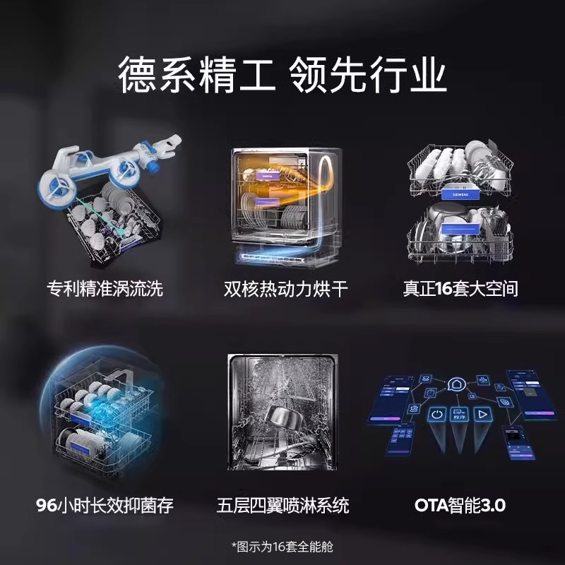 西门子全能舱16套独立嵌入式洗碗机家用全自动除菌消毒官方HB88