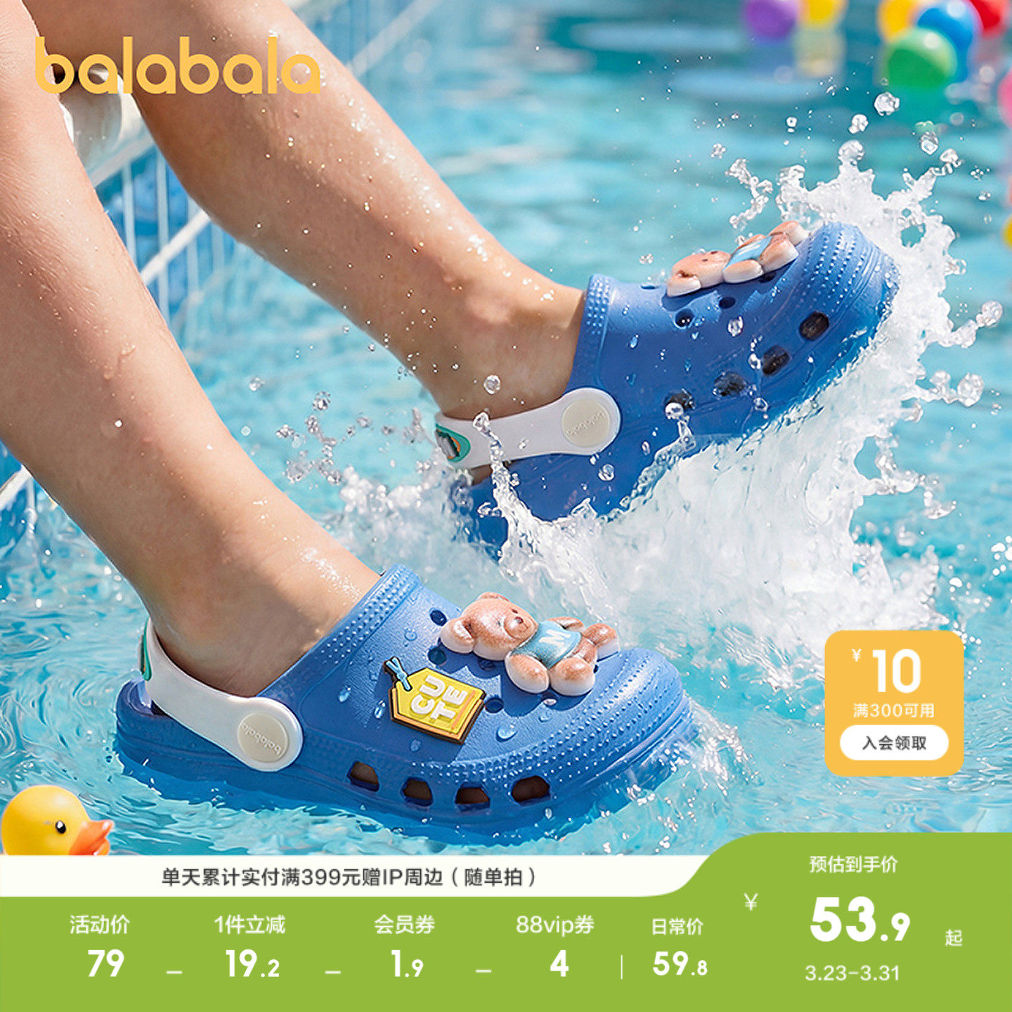 巴拉巴拉童鞋儿童拖鞋男女童2026年新款夏季童趣卡通透气洞洞鞋子