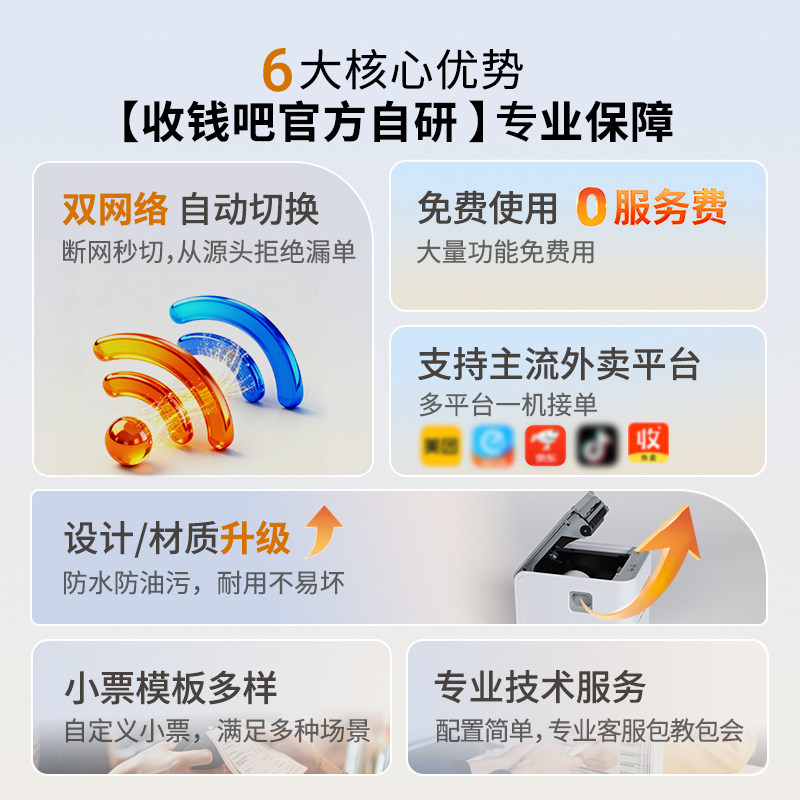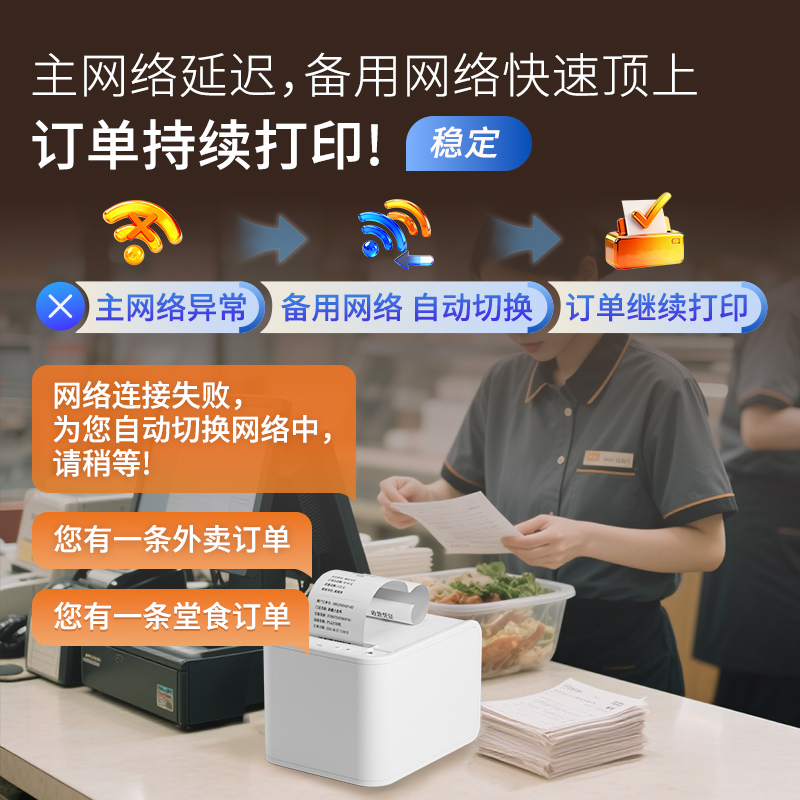 美团饿了么京东外卖打印机闪送抖音商用双4G全自动接单打单堂食餐厅热敏小票打印真人语音播报