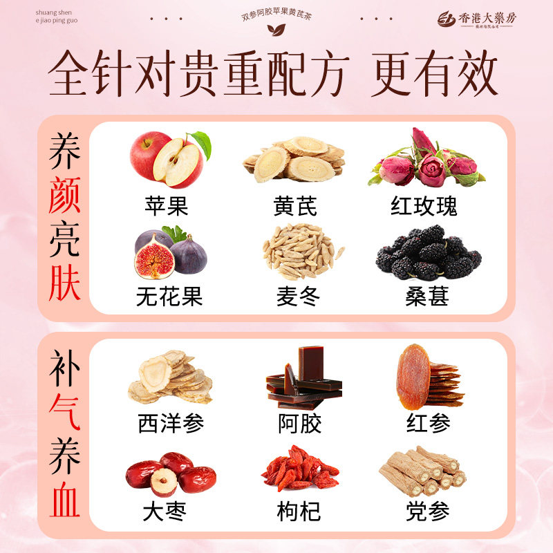 苹果黄芪水麦冬红枣枸杞茶补气养血适合女人士调理喝的养生花茶包