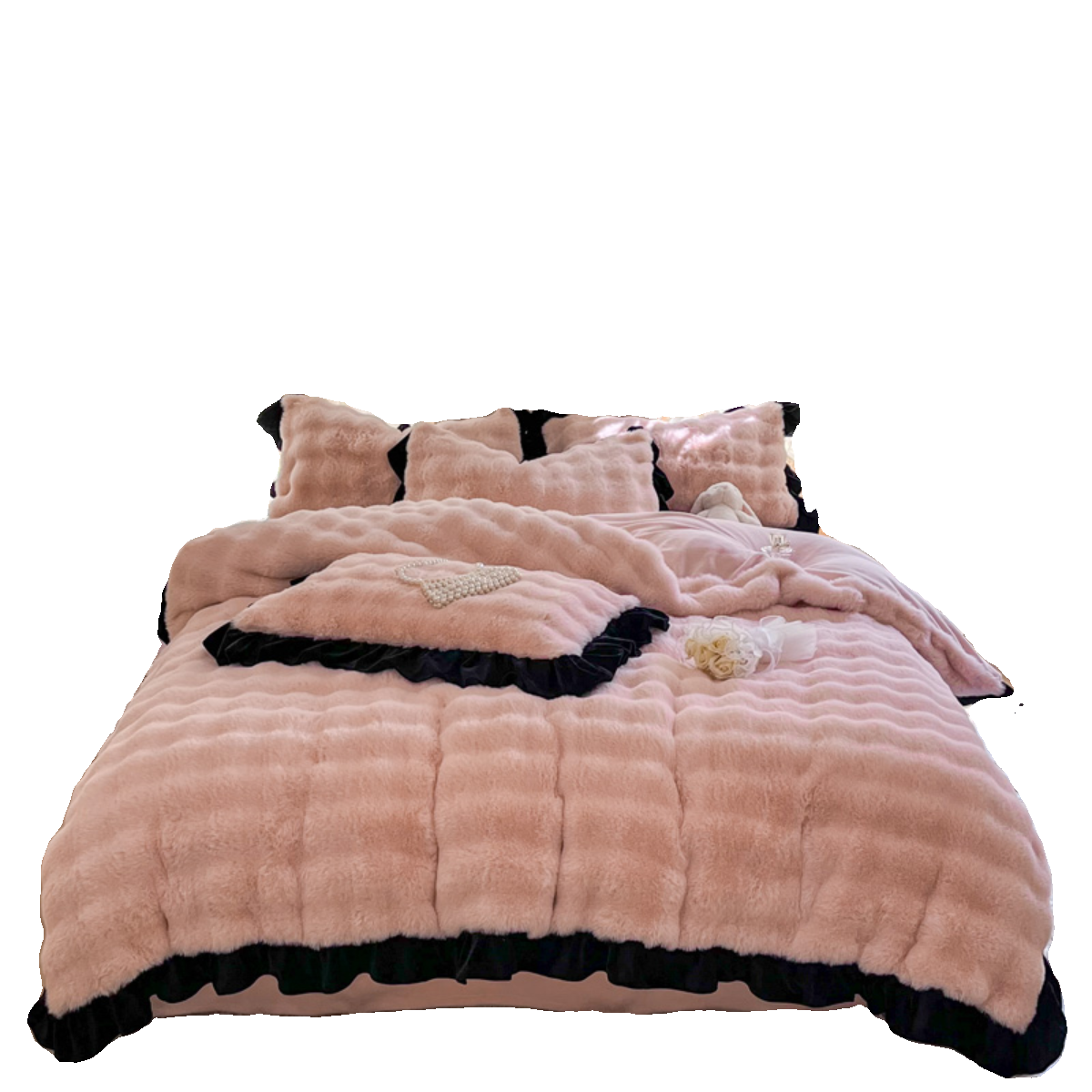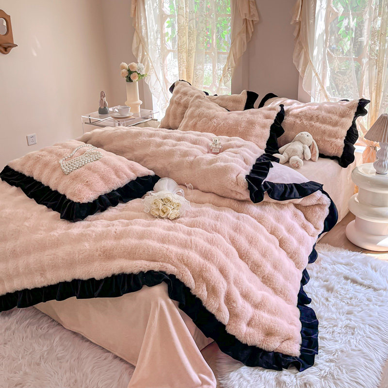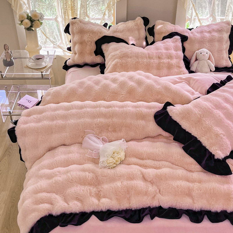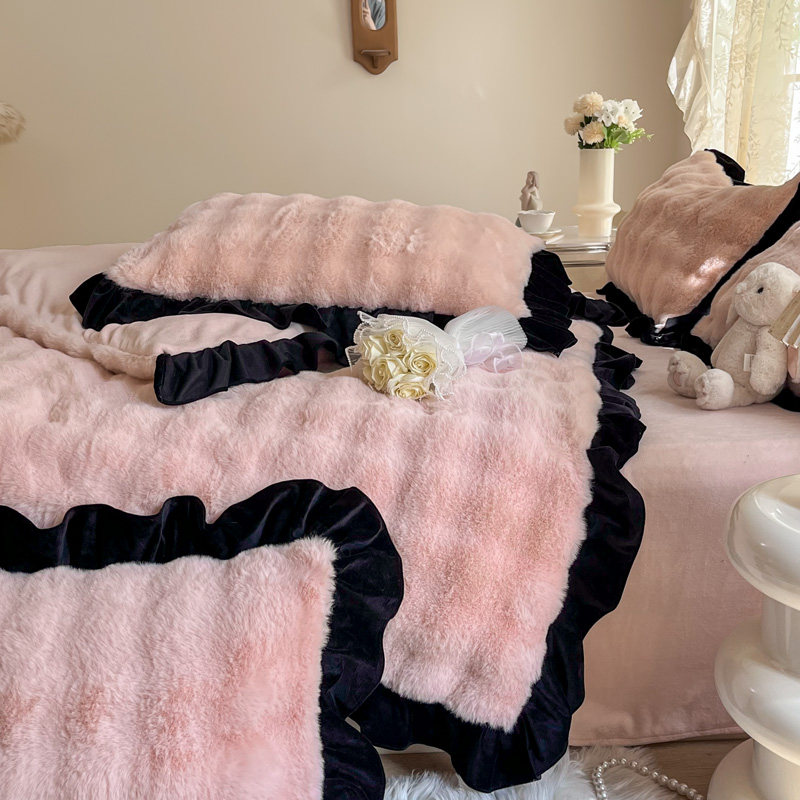 冬季加厚獭兔兔绒四件套公主风双面加绒保暖牛奶绒被套珊瑚绒床单