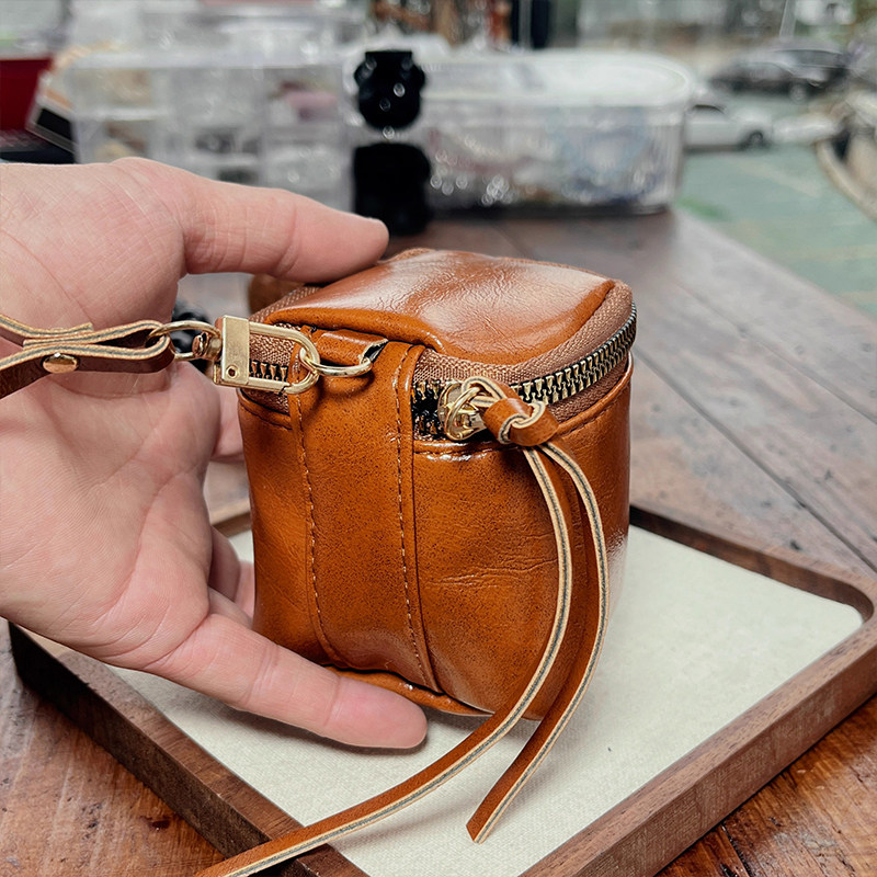 头层牛皮植鞣皮复古做旧真皮汽车钥匙包迷你拉链大容量男女腰挂包