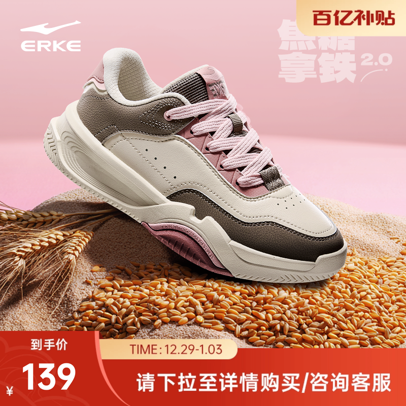 鸿星尔克焦糖拿铁女鞋冬季新款板鞋女士休闲鞋厚底鞋子百搭运动鞋