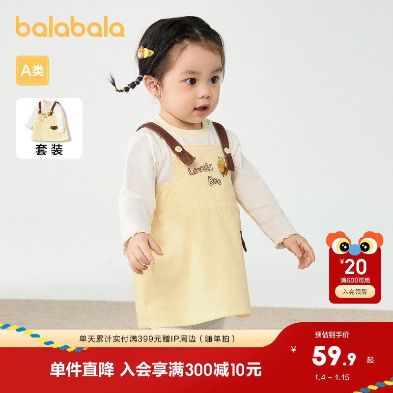 巴拉巴拉宝宝秋装女童长袖套装儿童衣服背带裙两件套可爱活力洋气
