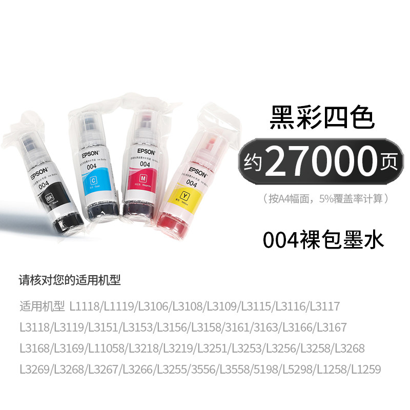 原装爱普生004墨水黑彩色L1118 1119 L3115 3116 3117 3118打印机