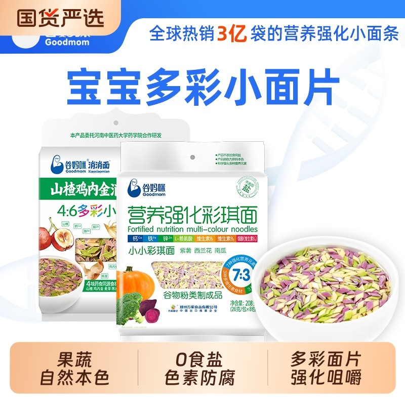 谷妈咪多彩营养强化宝宝小彩琪面条无添加食盐儿童钙铁锌果蔬主食