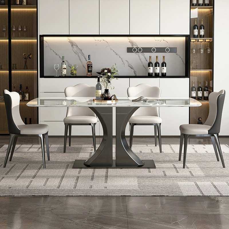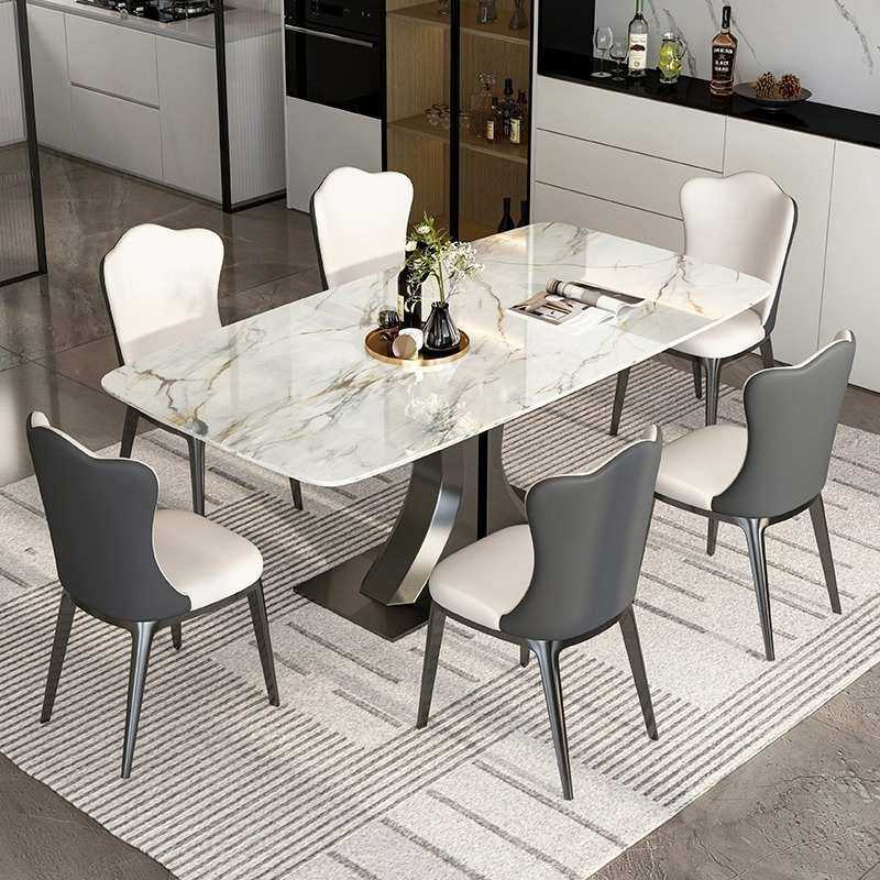 微晶石餐桌家用轻奢现代简约高端2024新款大理石超晶石餐桌椅组合