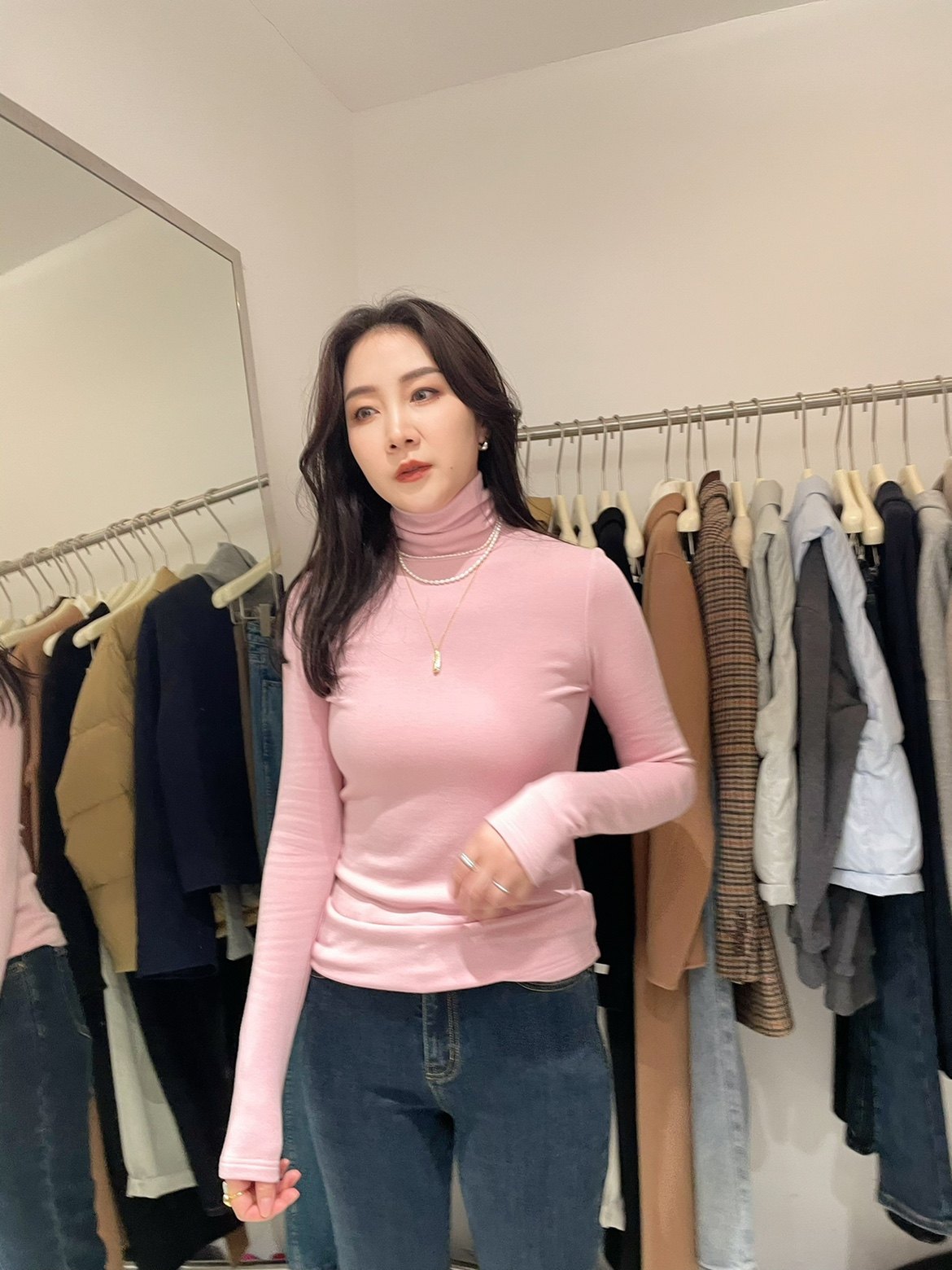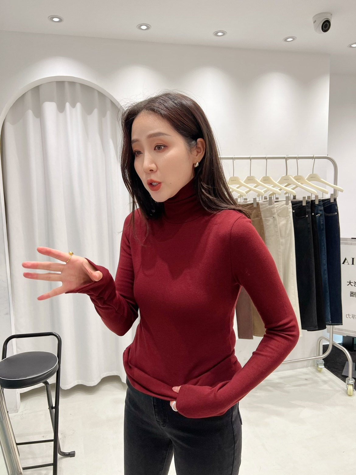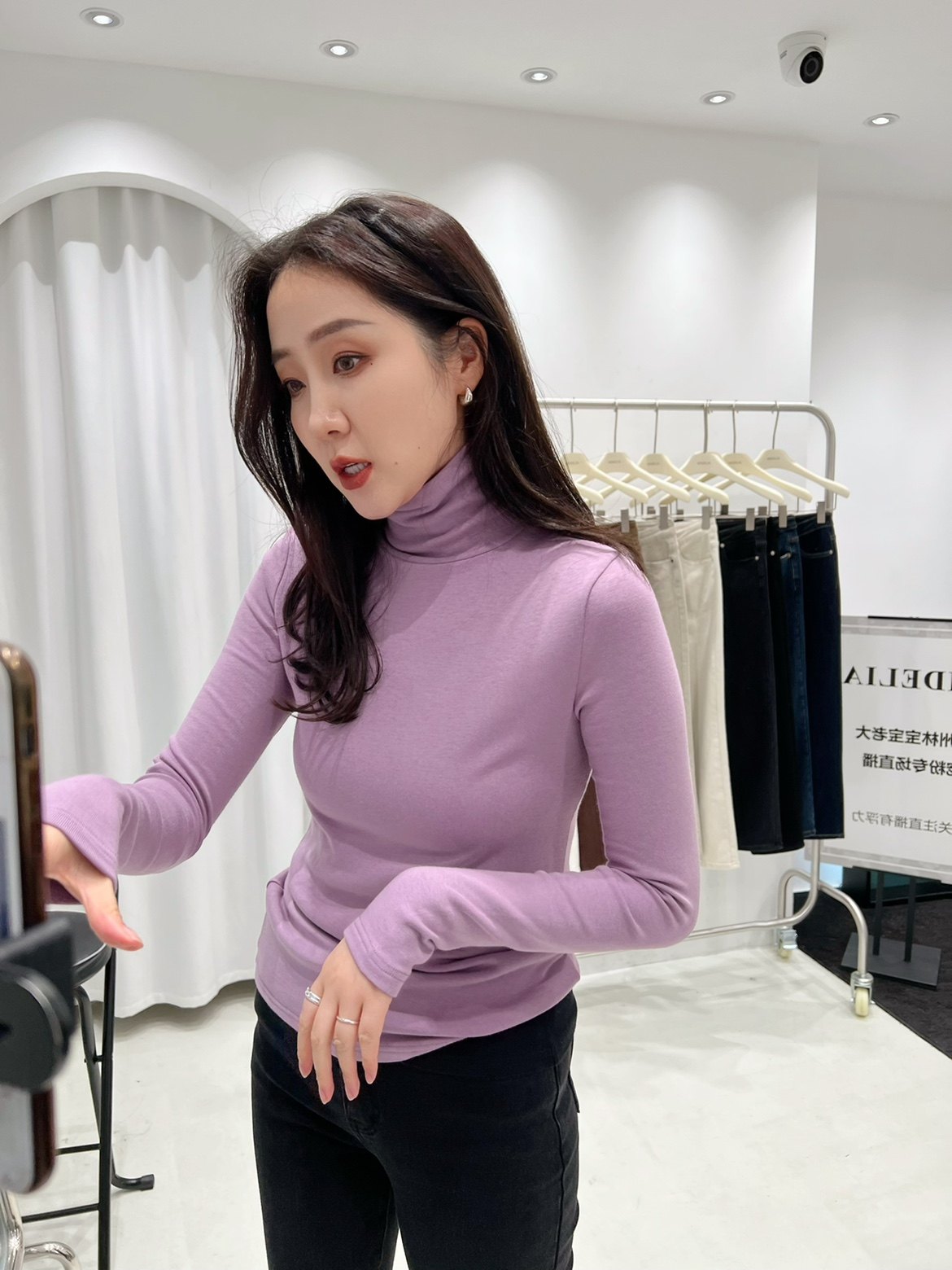 widelia十三行老板娘冬正肩小立领半高领打底衫弹力长袖T恤女9585