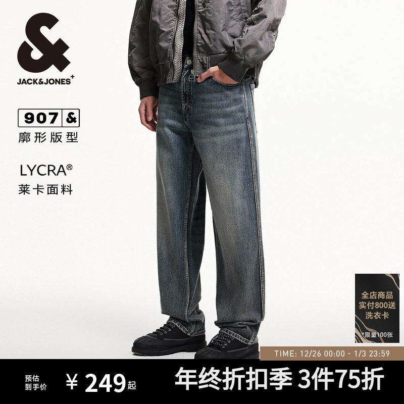 907杰克琼斯秋酷休闲廓形水洗长裤子牛仔裤下装男装阔腿裤男款