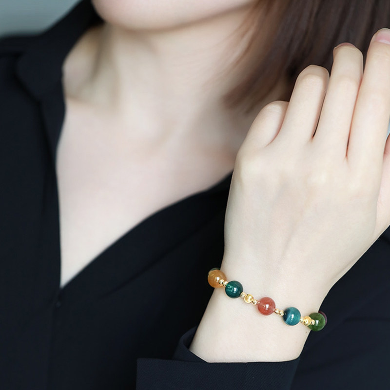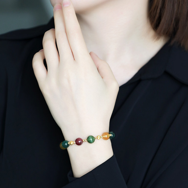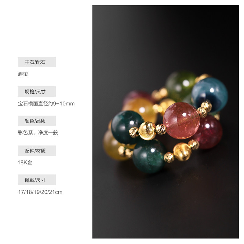 若华珠宝五彩雀=满天星大颗粒碧玺手链女18K金彩宝手串礼物定制
