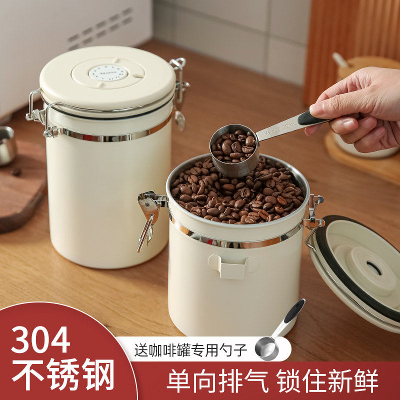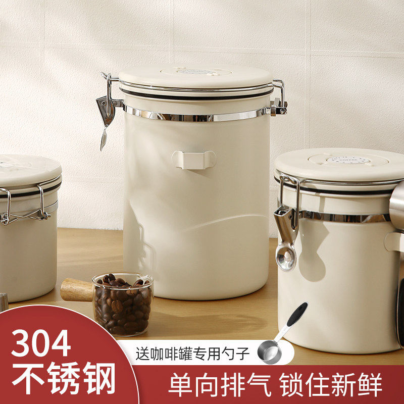 不锈钢咖啡豆密封罐真空单向排气保存罐储存收纳储豆罐养豆储存罐