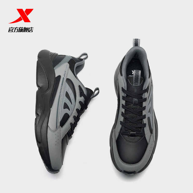 鸿星尔克男鞋运动鞋桀骜皮面秋冬款休闲鞋青少年软底老爹鞋跑步鞋