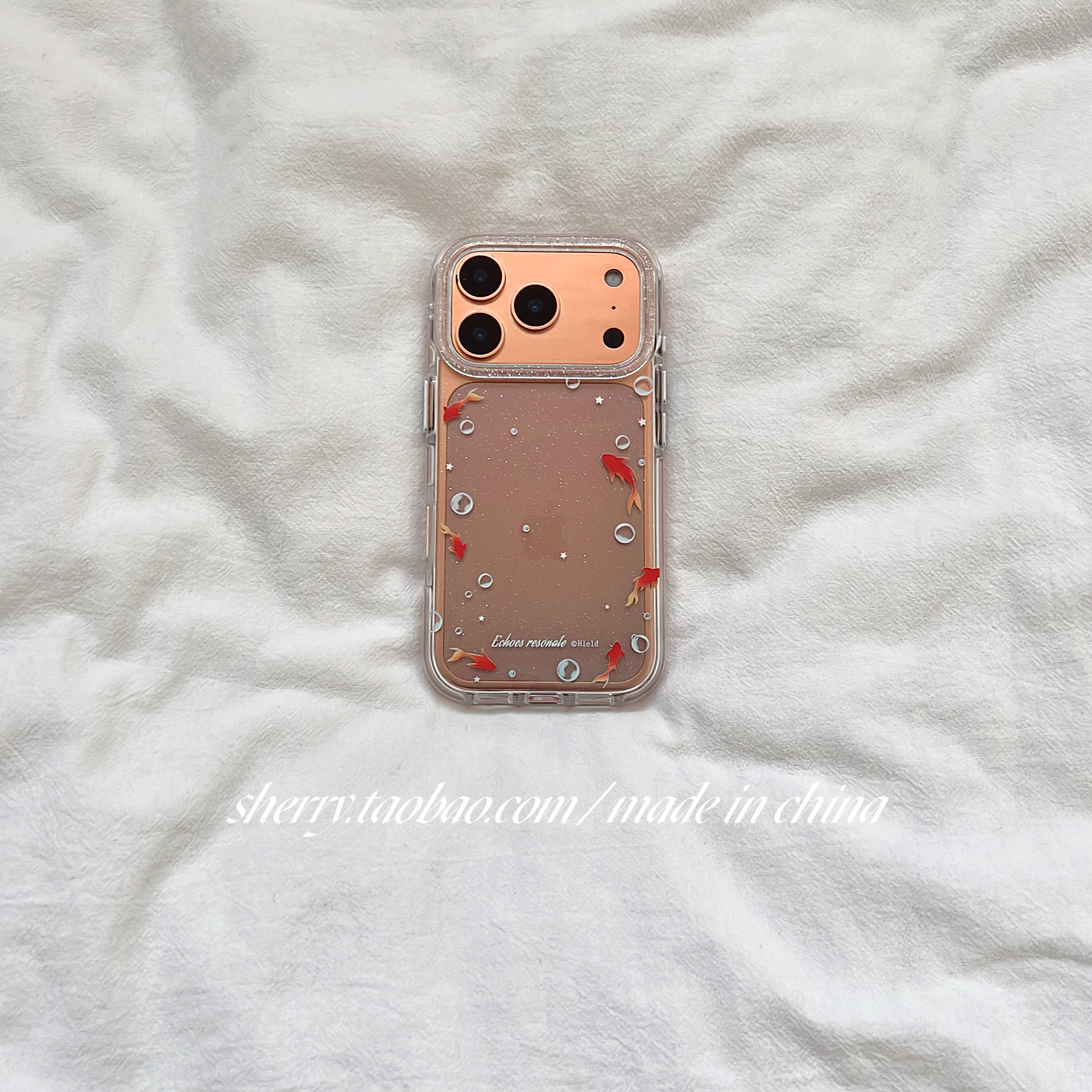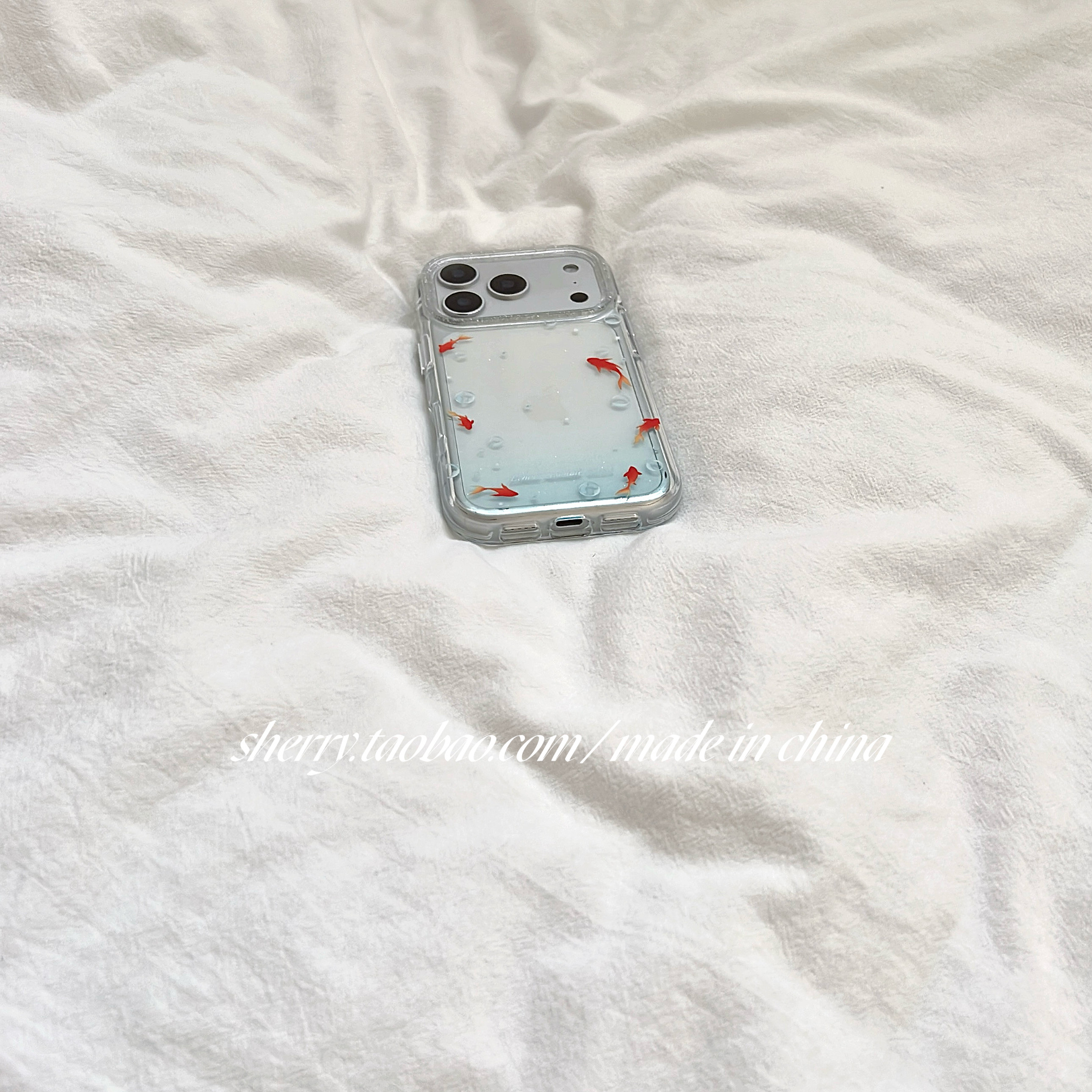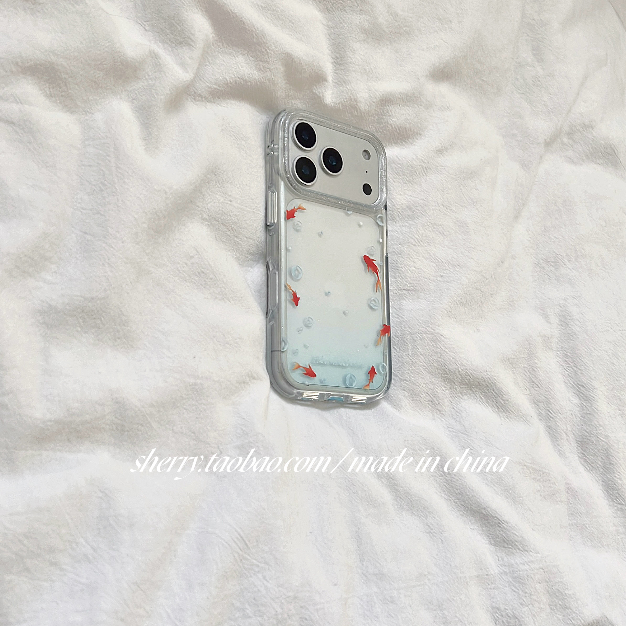 SHERRY*ins风透明蓝泡泡红色锦鲤适用于苹果17ProMax手机壳iPhone16Pro小众少女心15简约14小清新卡通可爱